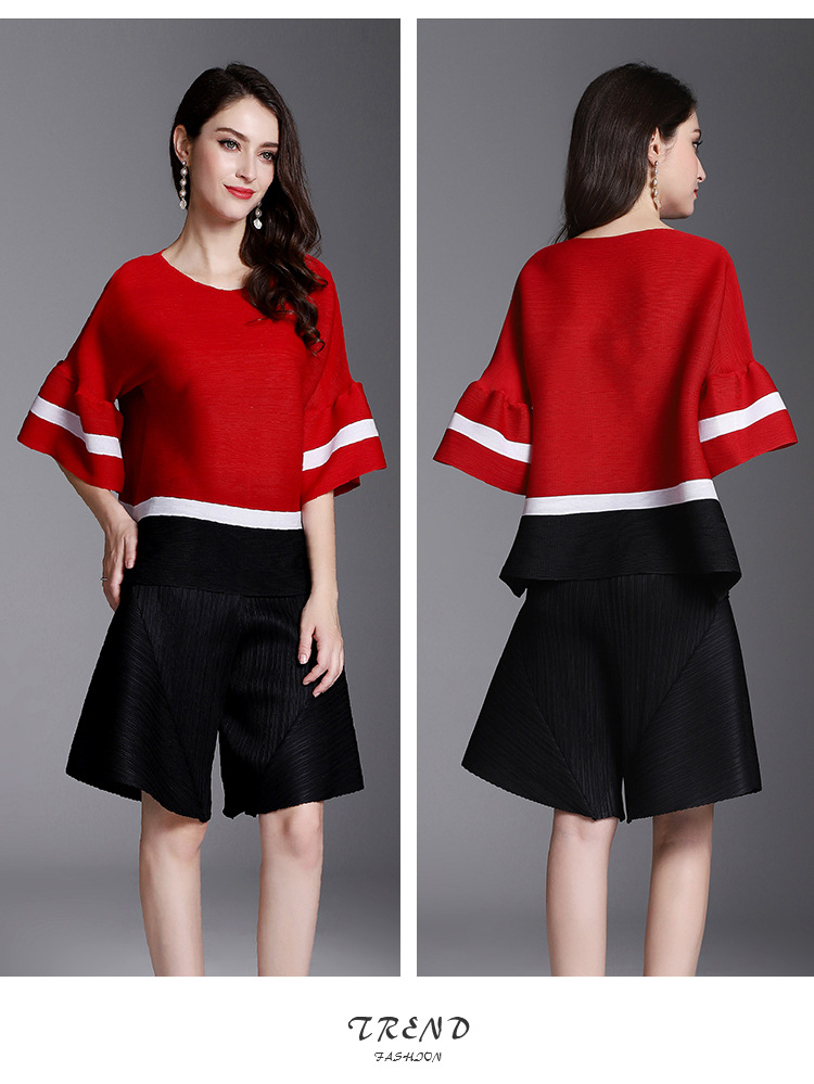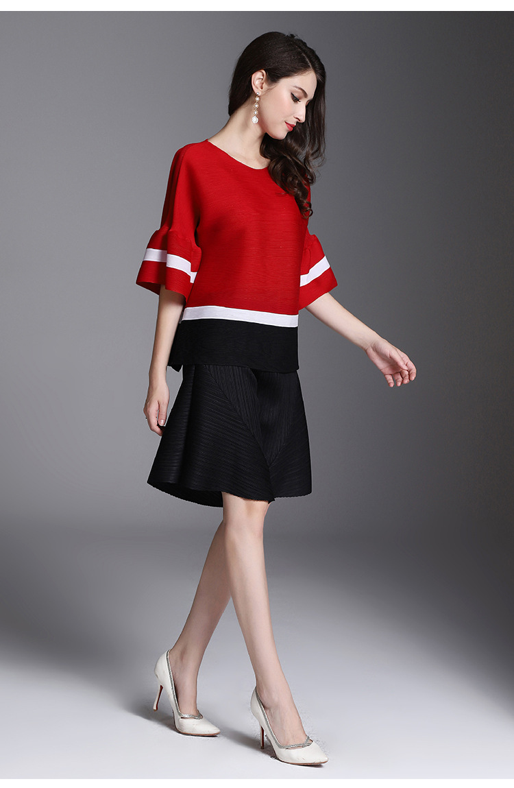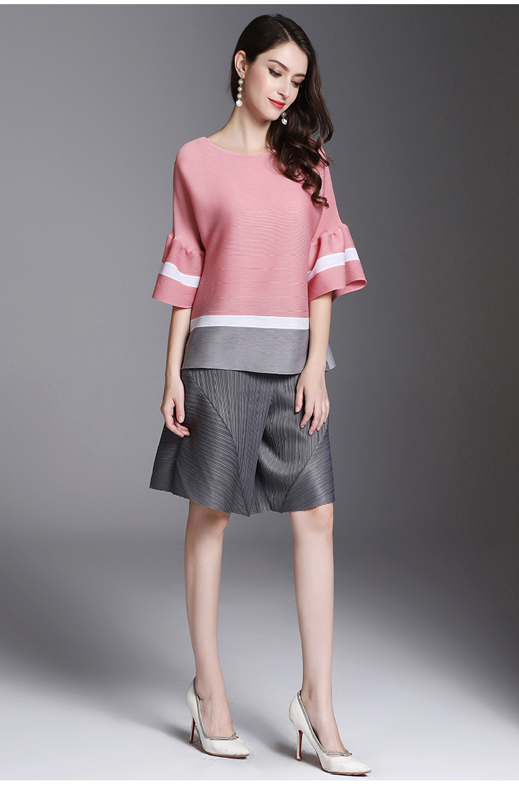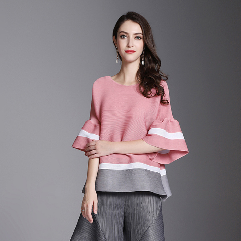 You are here: Home / Product / High Qulity Pleats / Arrival Women Pleated Office Lady Autumn Casual Striped O-neck Flare Sleeve Pullover Shirts