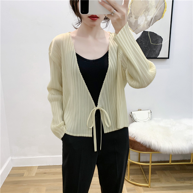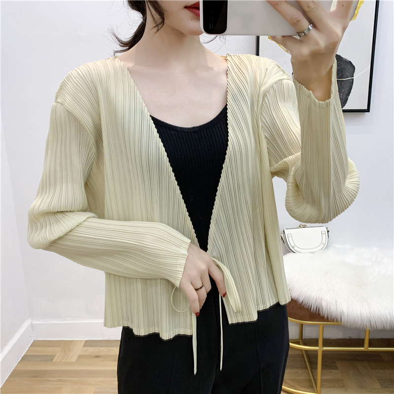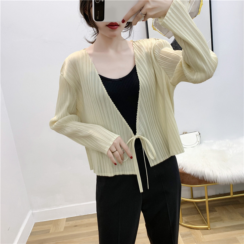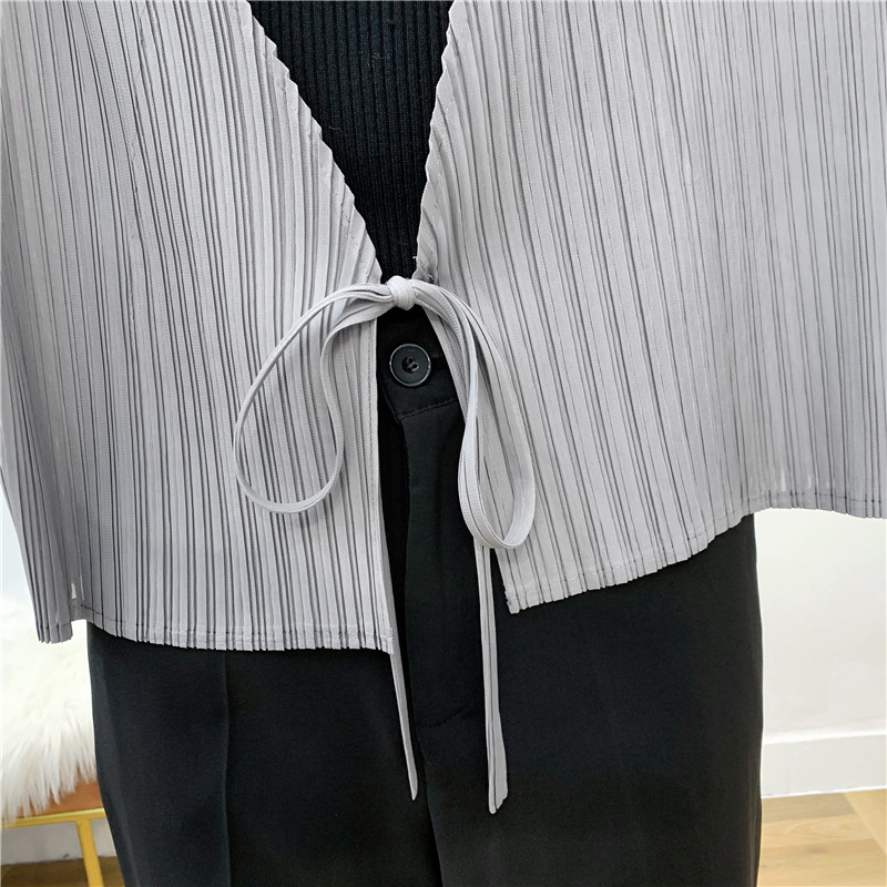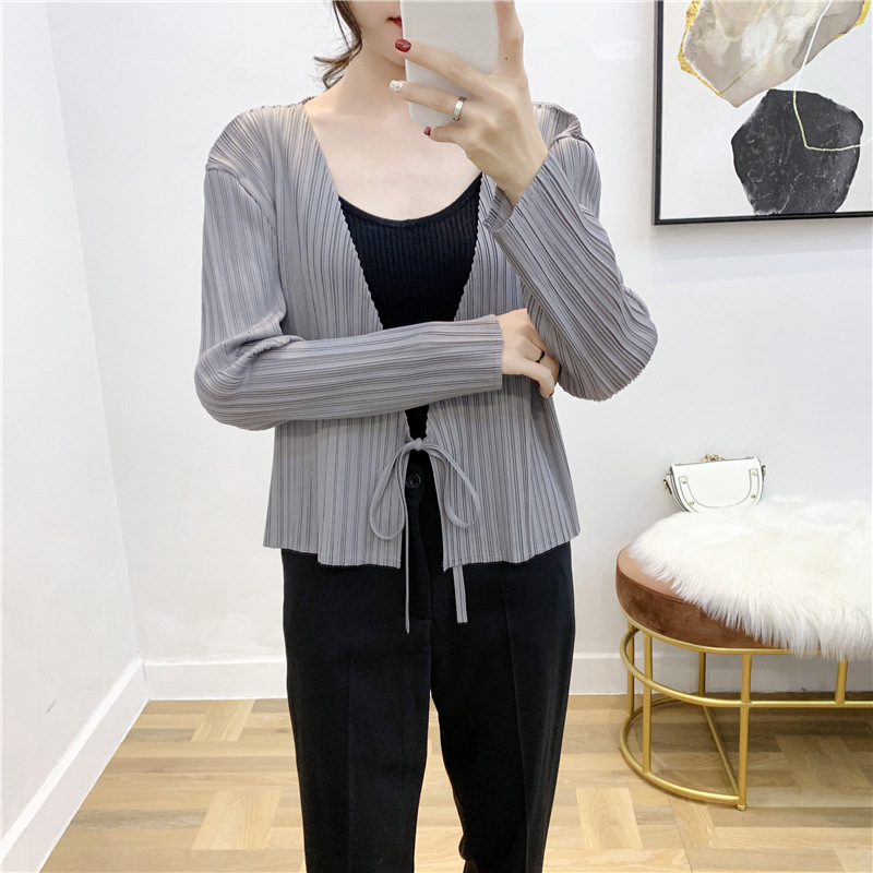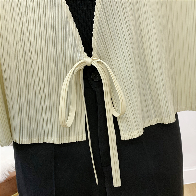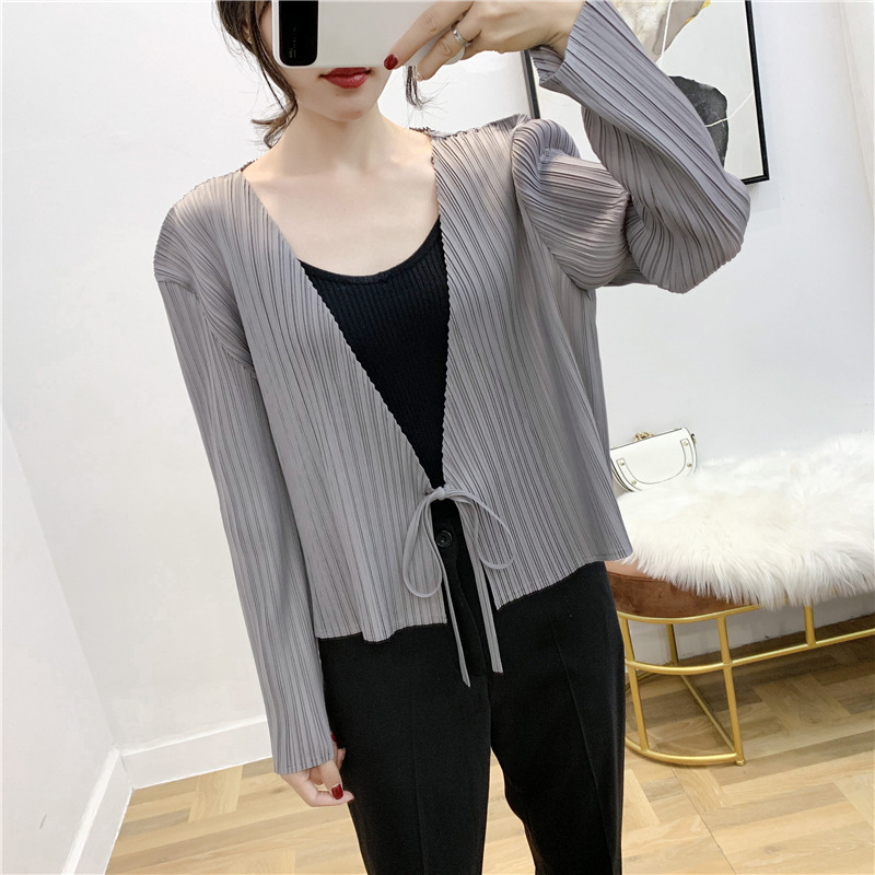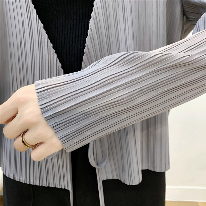 You are here: Home / Product / High Qulity Pleats / Autumn Pleated Cardigan Tie Jacket Top Long Sleeve Coat