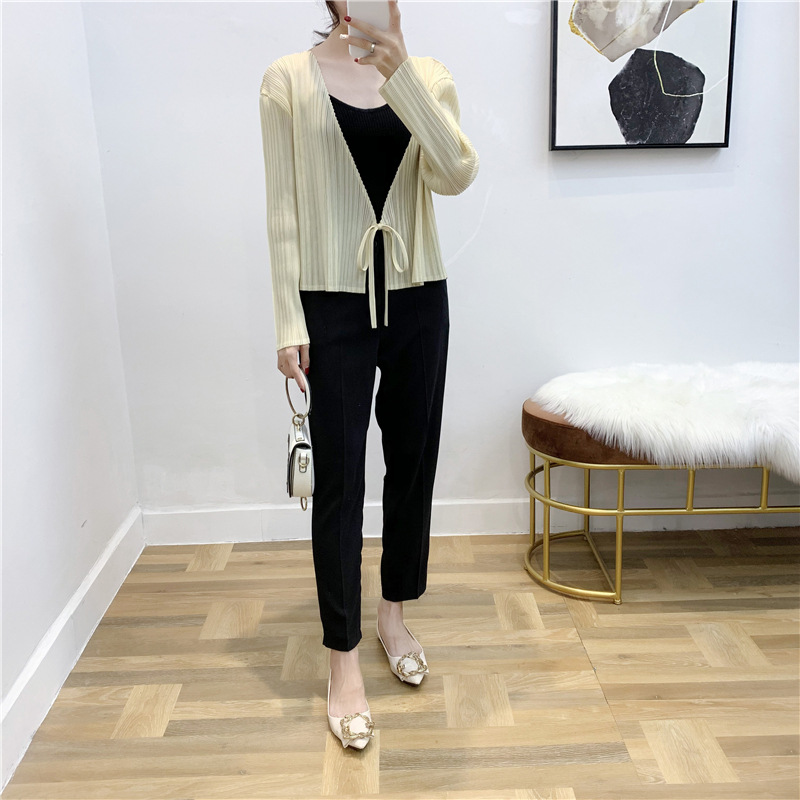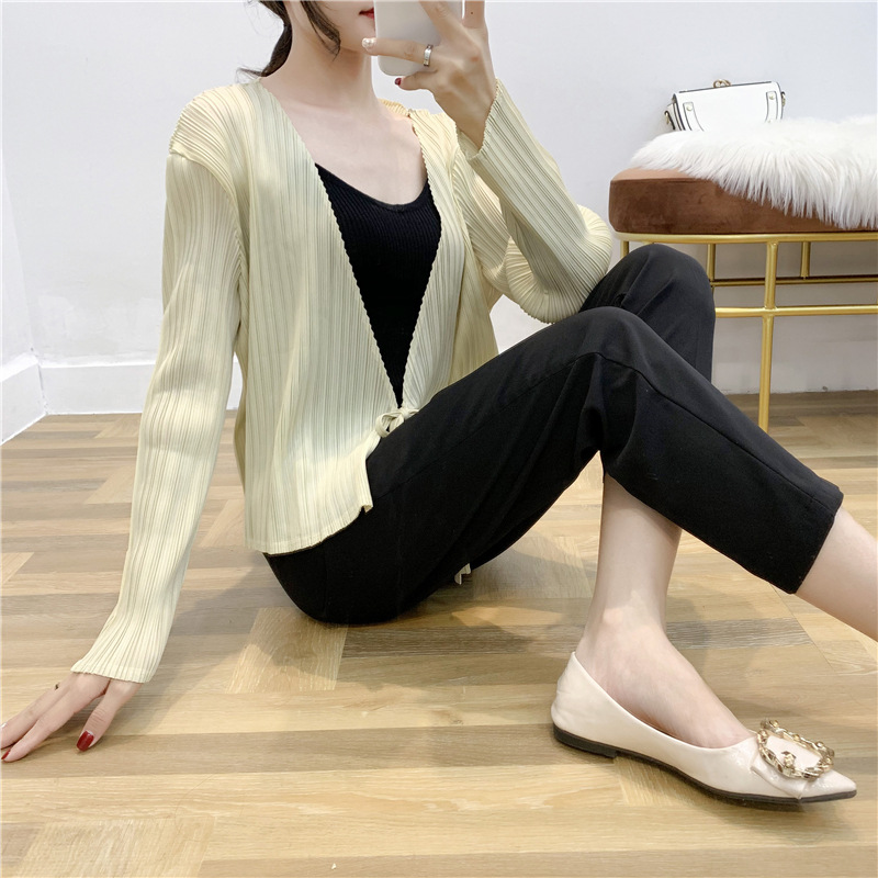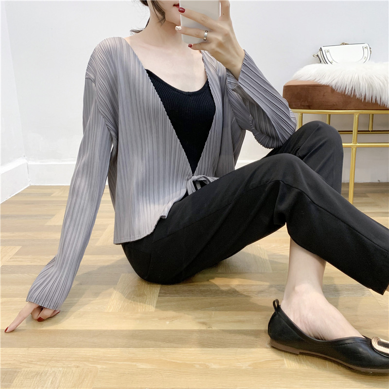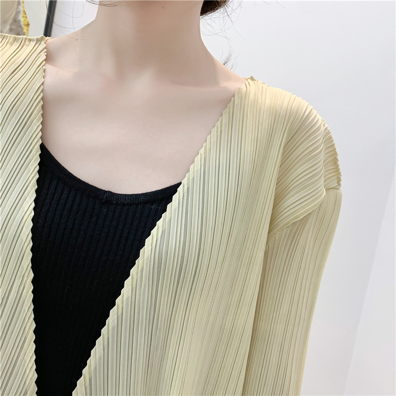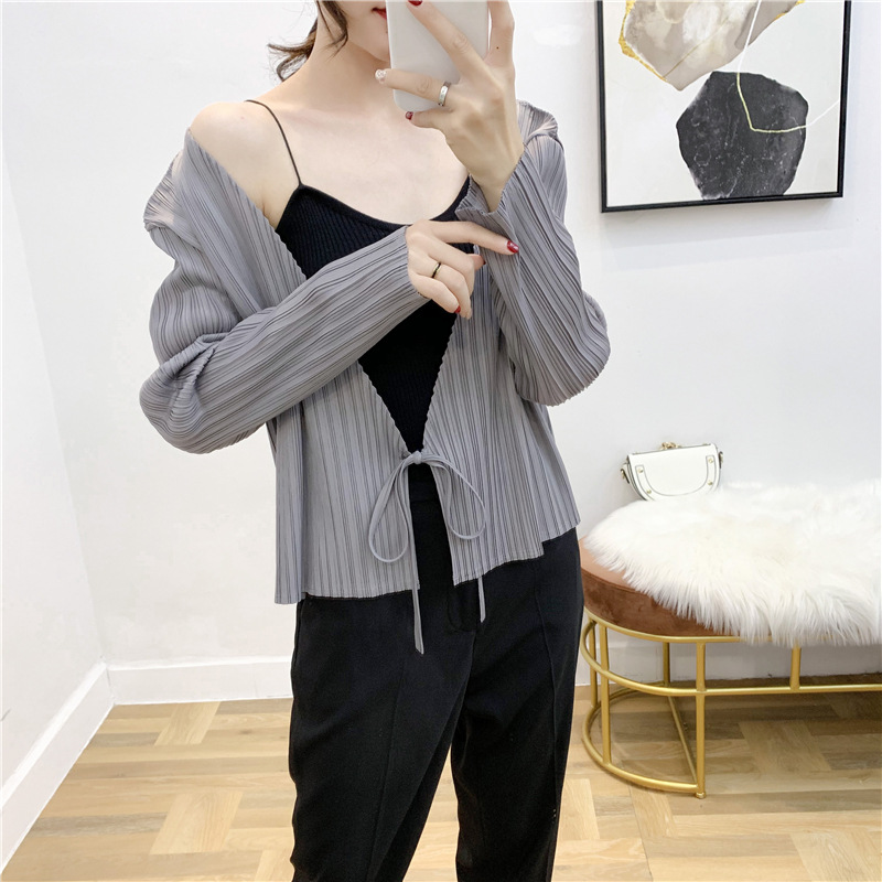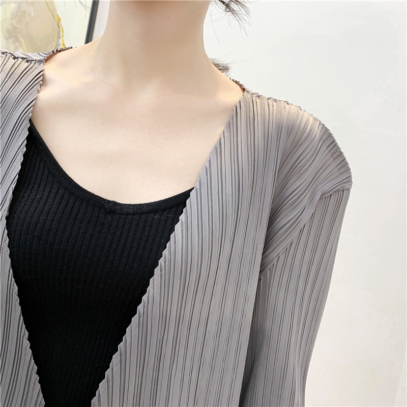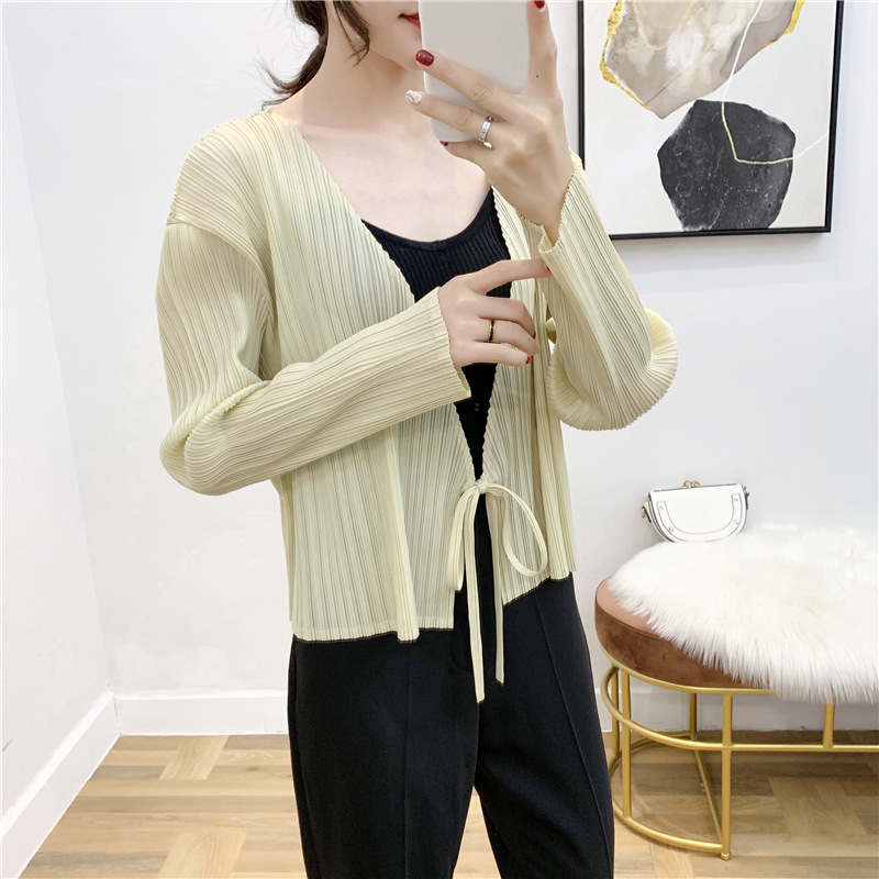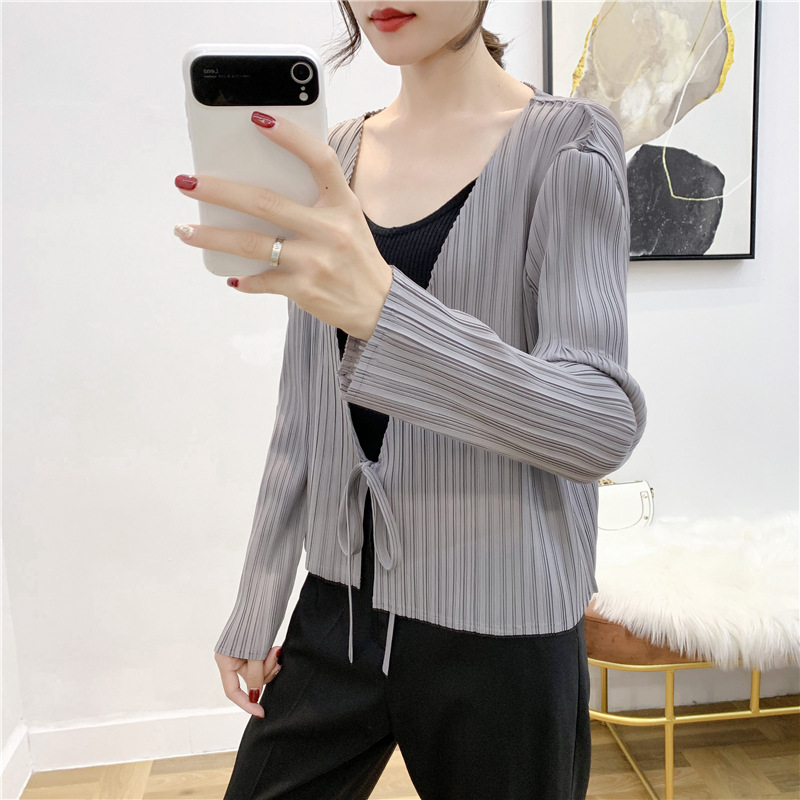 You are here: Home / Product / High Qulity Pleats / Autumn Pleated Cardigan Tie Jacket Top Long Sleeve Coat