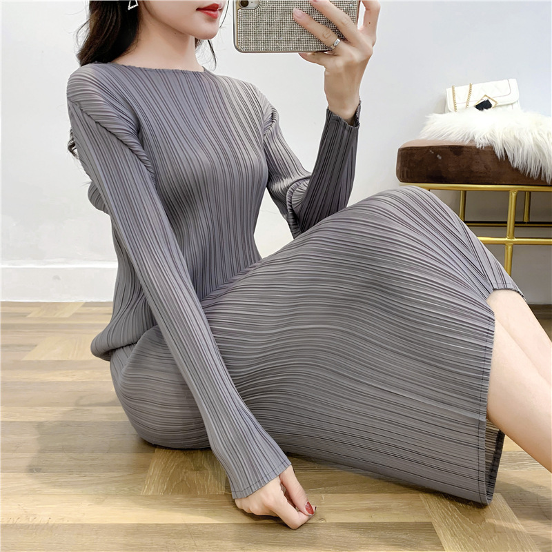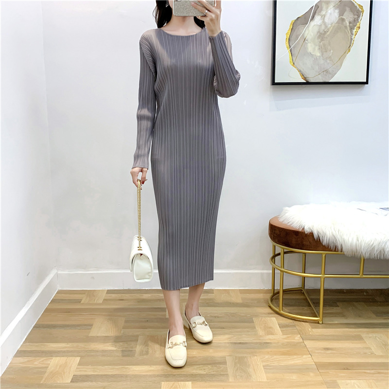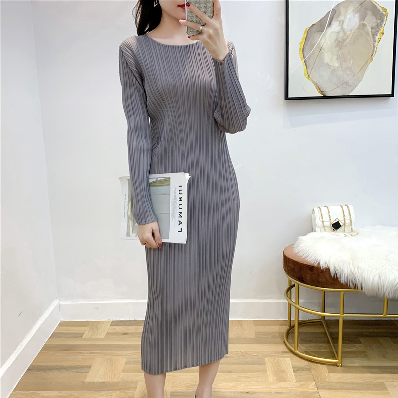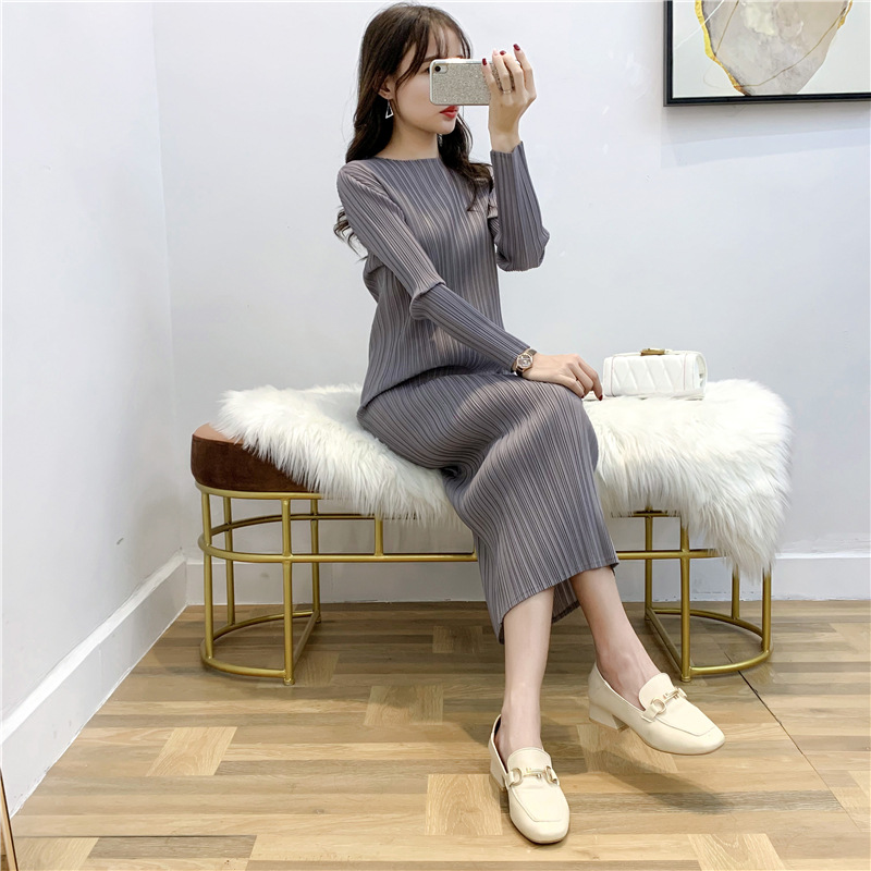 You are here: Home / Product / High Qulity Pleats / Autumn Women Pleated Fashion New Solid Color Loose Big Size Dress