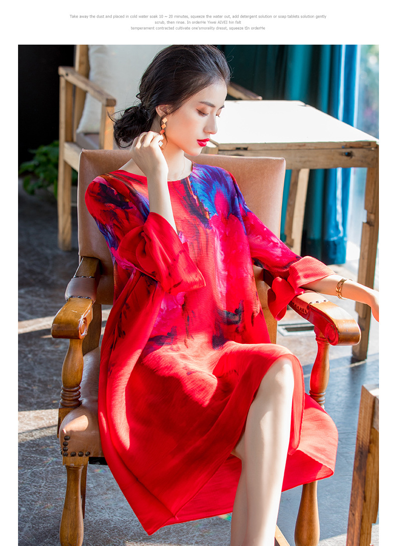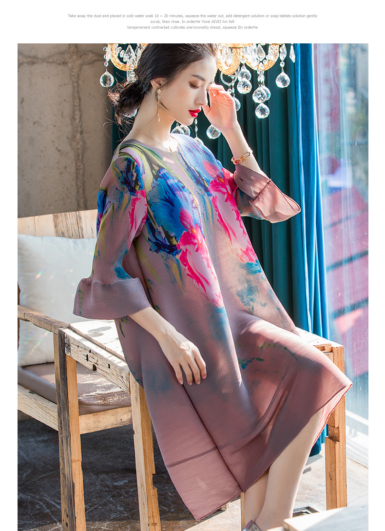 You are here: Home / Product / High Qulity Pleats / Early Spring 2020 Women Large Fashion Print Pleated Dress New Relaxed A-line Dress