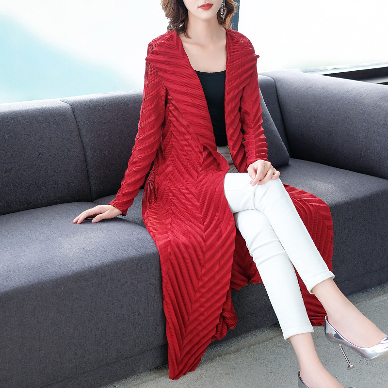 You are here: Home / Product / High Qulity Pleats / Loose-size Pleated Windbreaker New Women Autumn 2019 Long-sleeved Jacket Pleated Cardigan