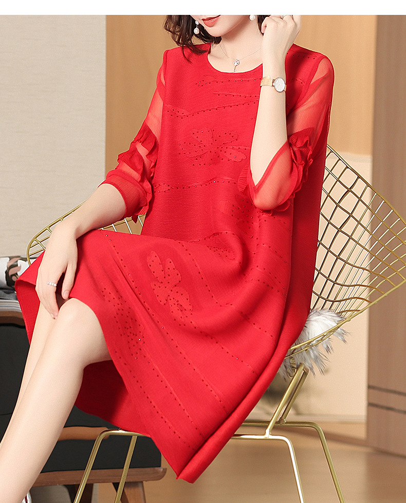 You are here: Home / Product / High Qulity Pleats / Nail-beaded Pleated Dress Summer Women's Loose Size Fashion Fashion Dress