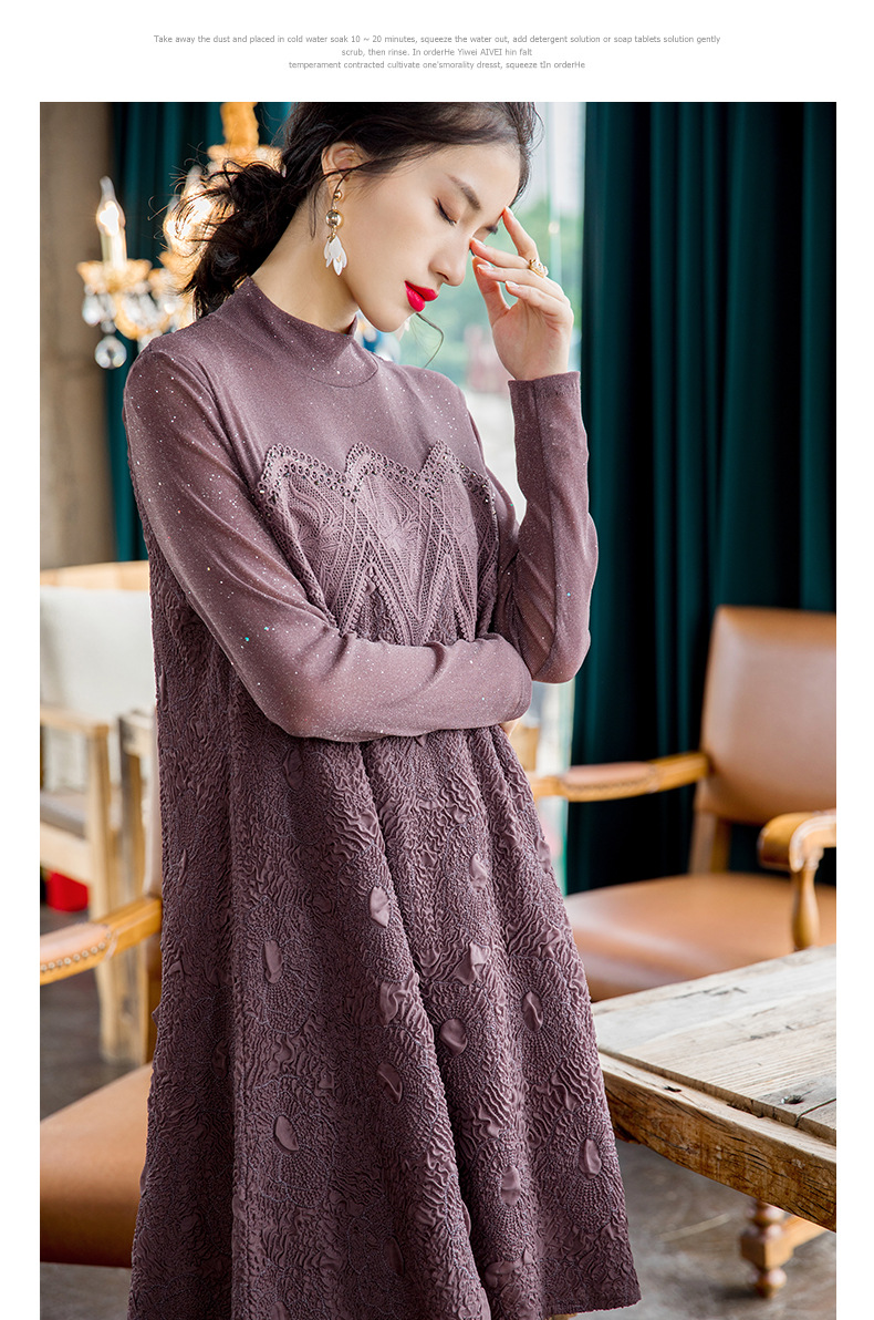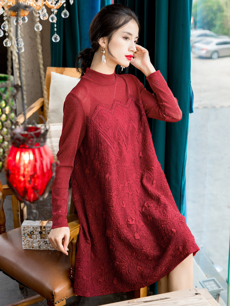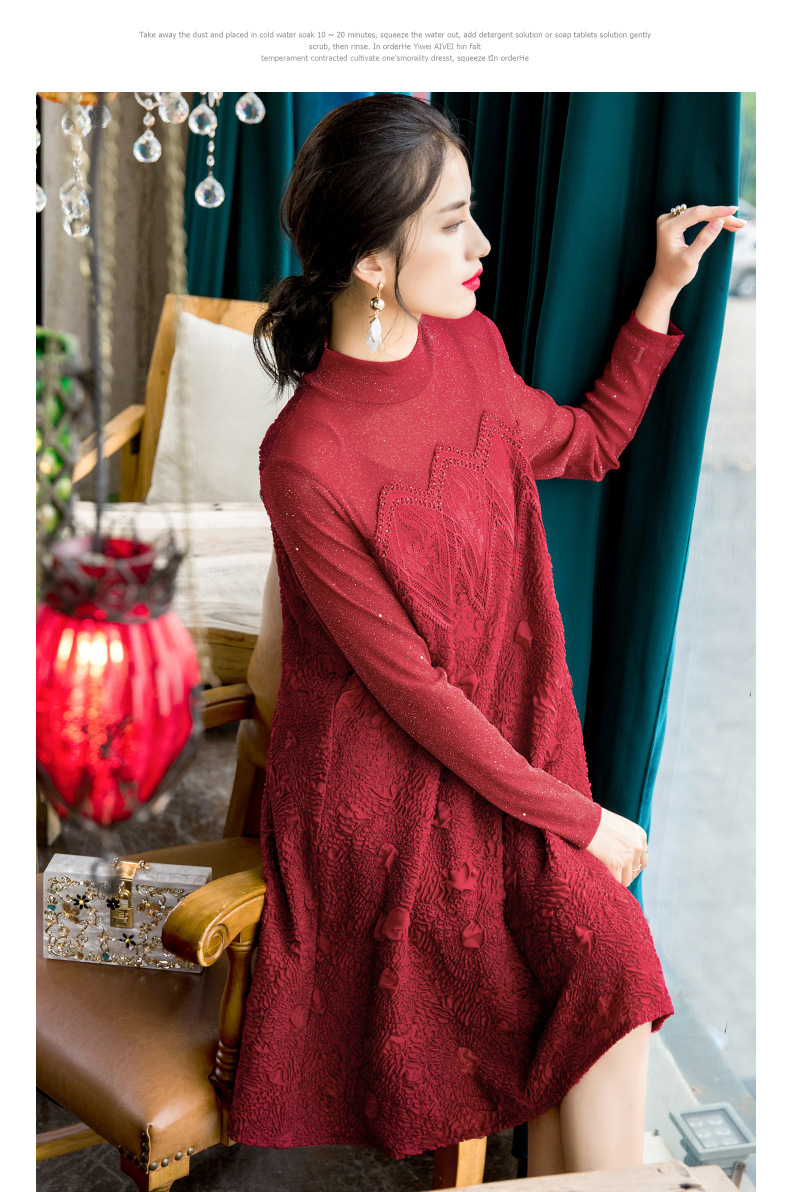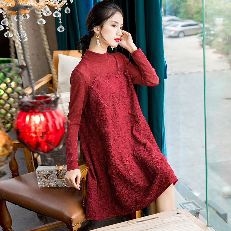 You are here: Home / Product / High Qulity Pleats / New Women's Fashion Embroidered Beaded Long Sleeve Large Pleated Dress In Spring 2020