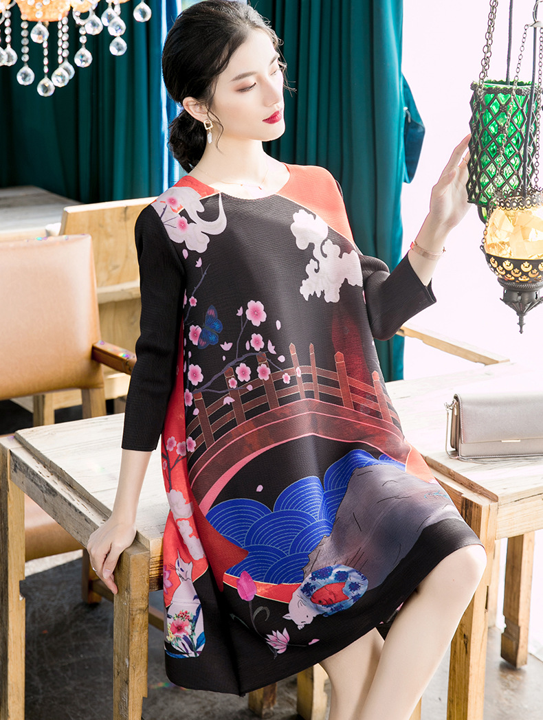 You are here: Home / Product / High Qulity Pleats / Oversized Belly Covering Dress 2020 Spring New Fashion Printed Loose Dress