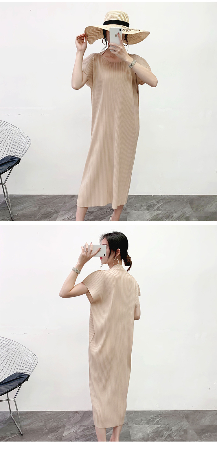 You are here: Home / Product / High Qulity Pleats / Pleated Dress Summer 2020 New Apricot Design Sense A-line Dress