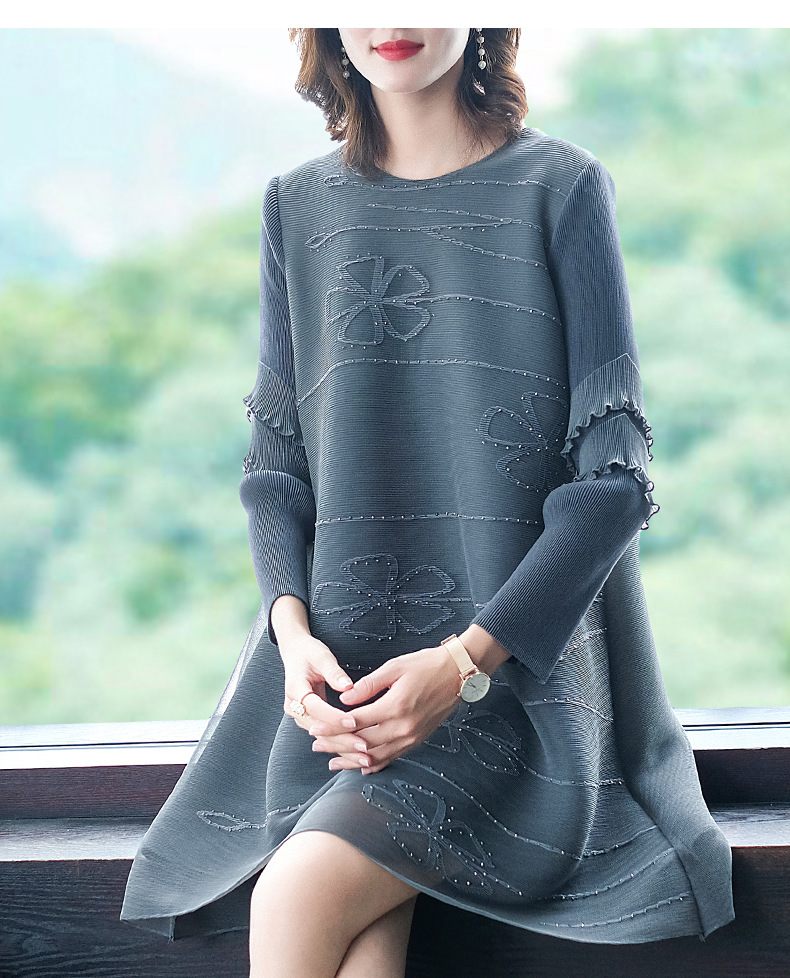 You are here: Home / Product / High Qulity Pleats / Pleated Fashion Embroidered Beaded Large Long Sleeve Dress New Women's Loose A-line Dress Autumn 2019