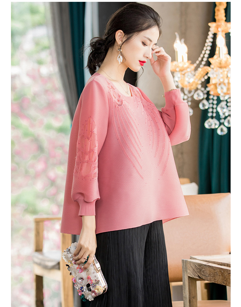 You are here: Home / Product / High Qulity Pleats / Pleated Oversized Top Early Spring 2020 New Loose Fashion Embroidered Beaded All-around shirt