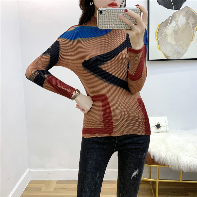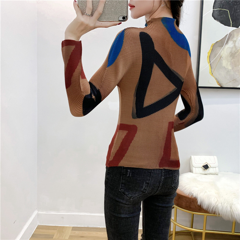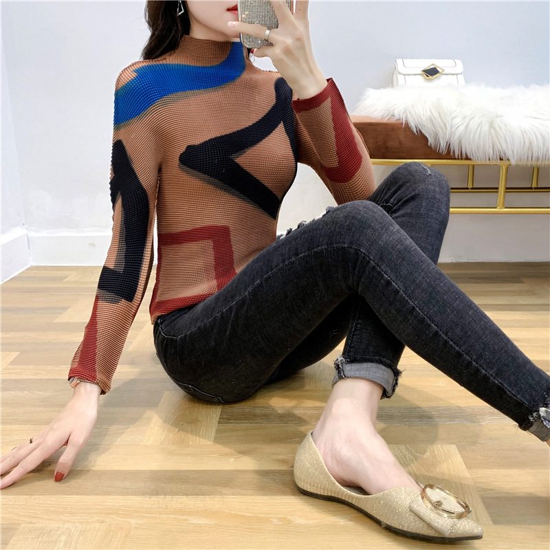 You are here: Home / Product / High Qulity Pleats / Pleated Top Women's 2020 Spring Women's High Neck Long Sleeve Slim Print T-shirt Bottoming