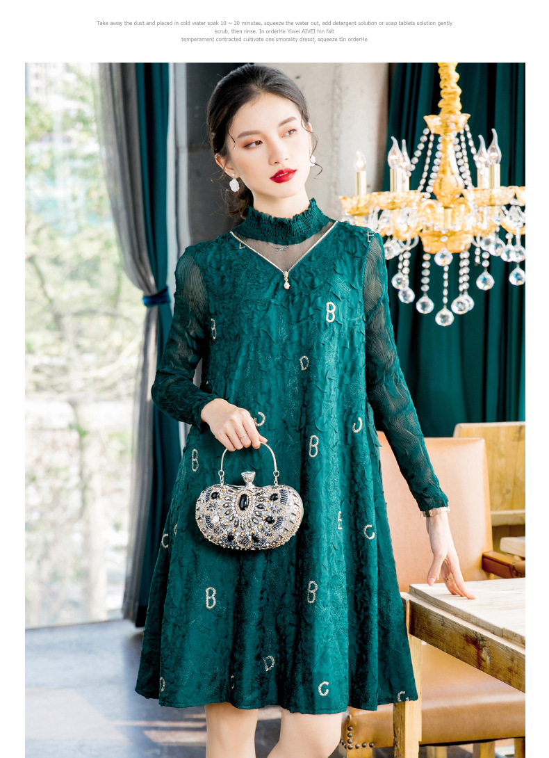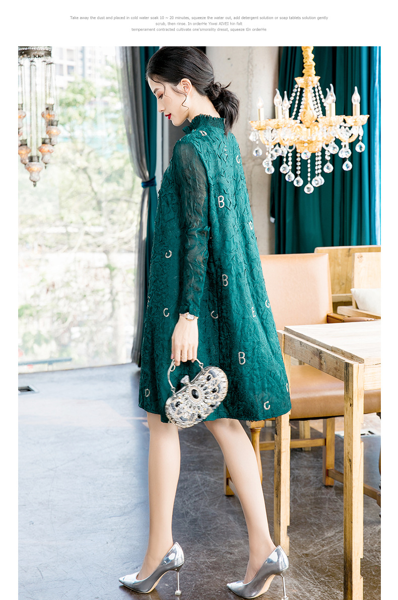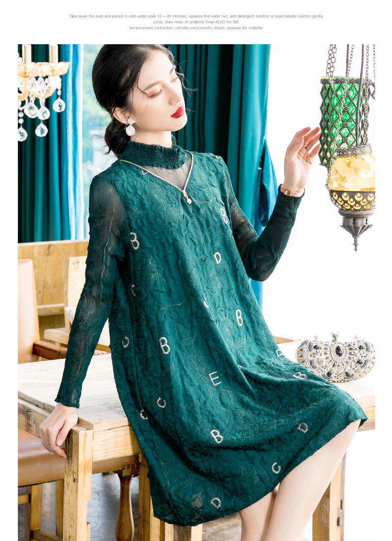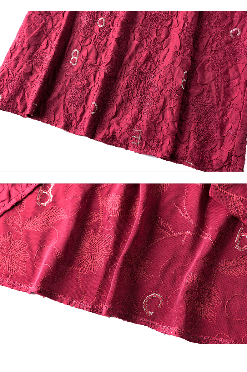 Red Bottomed Long Sleeve Pleated Embroidery Dress New Relaxed A-line Dress Spring 2020