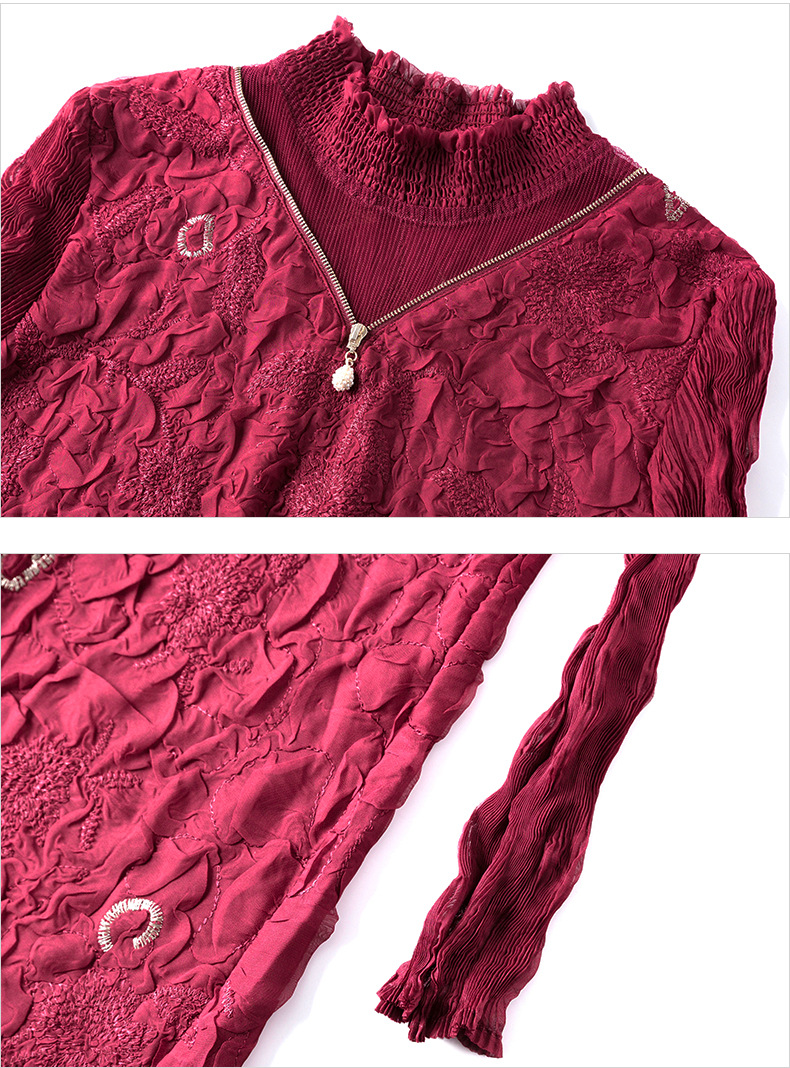 You are here: Home / Product / High Qulity Pleats / Red Bottomed Long Sleeve Pleated Embroidery Dress New Relaxed A-line Dress Spring 2020
