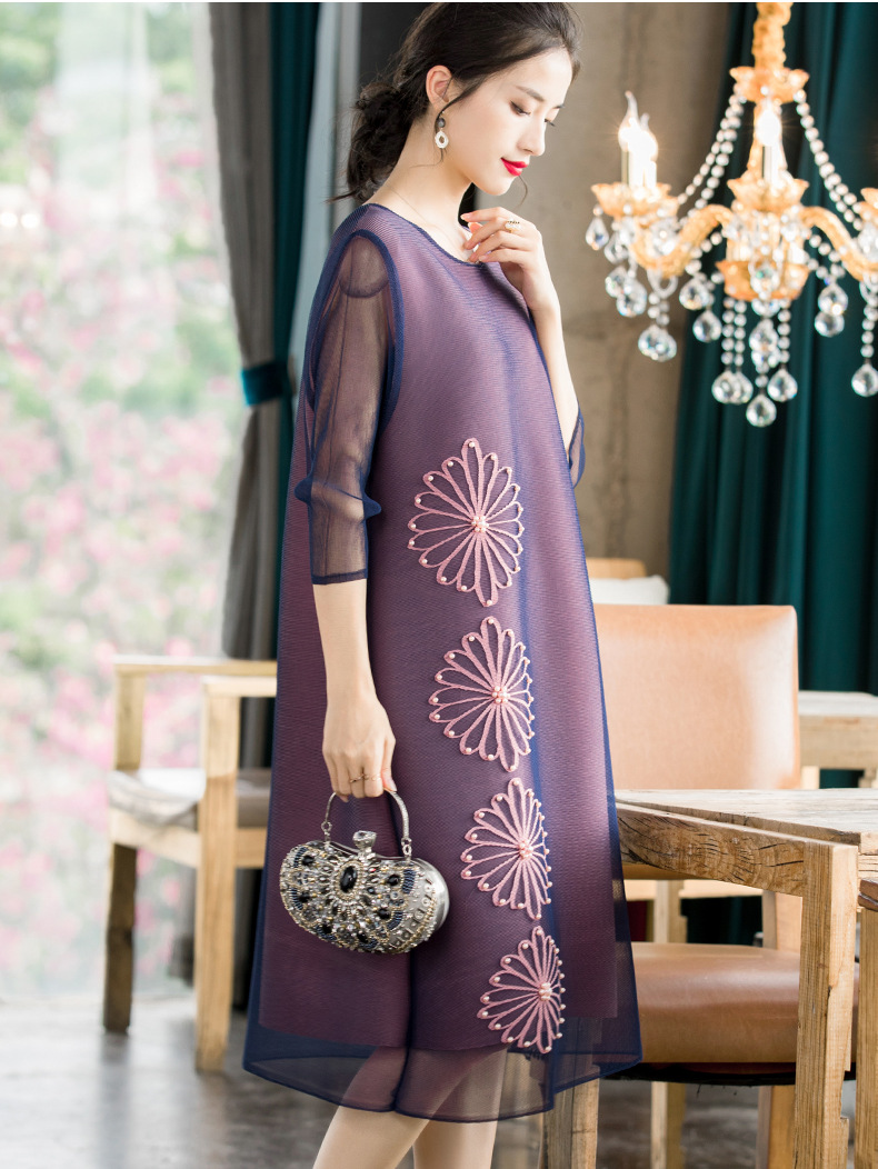 You are here: Home / Product / High Qulity Pleats / Retro Beaded Mesh Dress Spring 2020 New Loose Large Pleated Dress