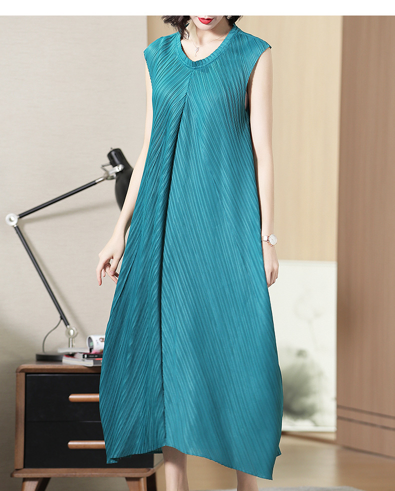 You are here: Home / Product / High Qulity Pleats / Sleeveless Large Loose Pleated Dresses Pure Colors Summer New Women's A-shaped Dresses