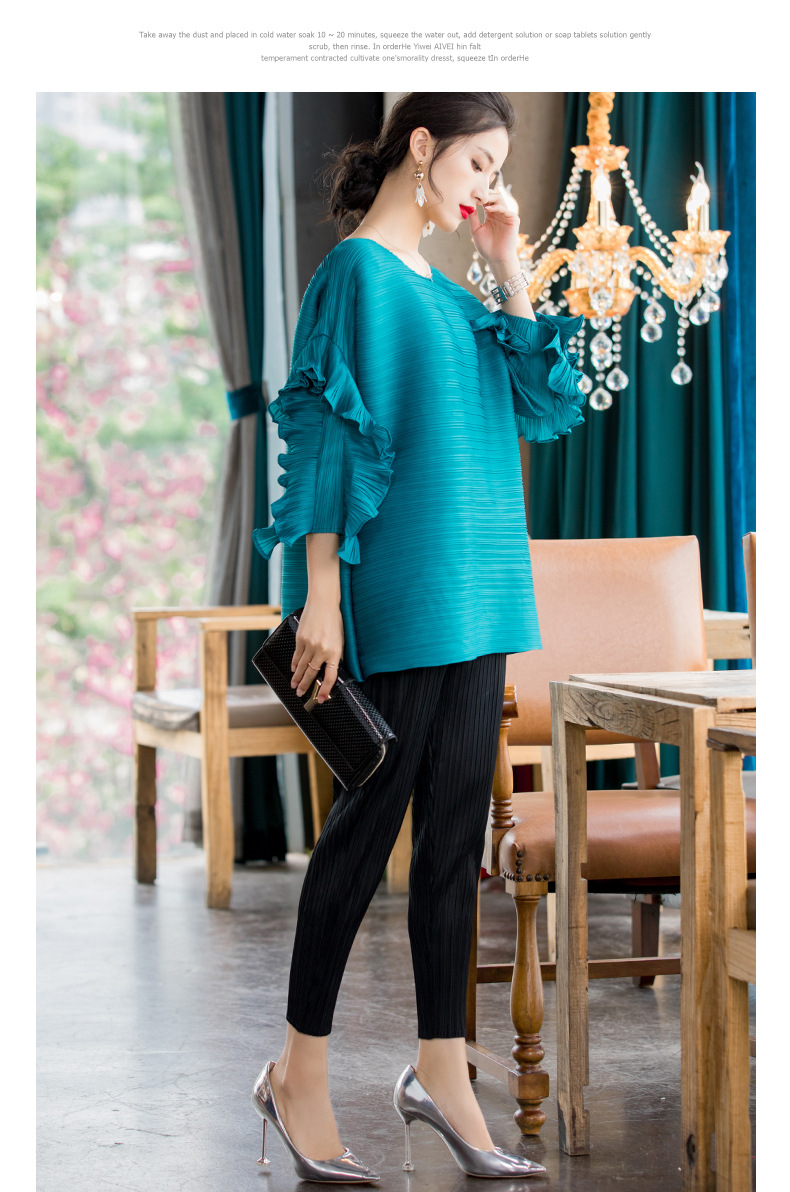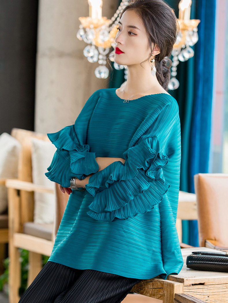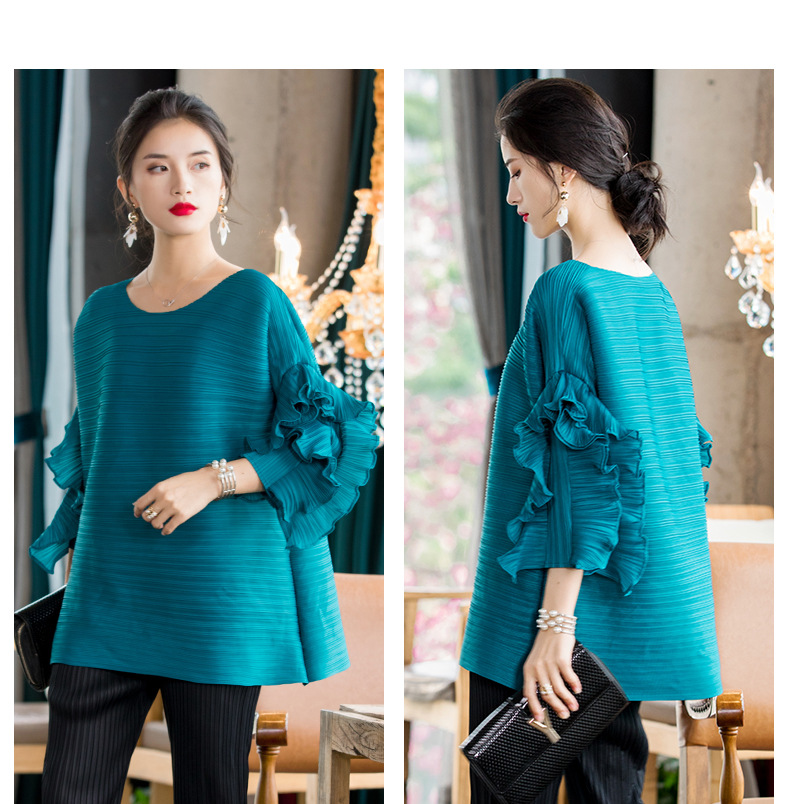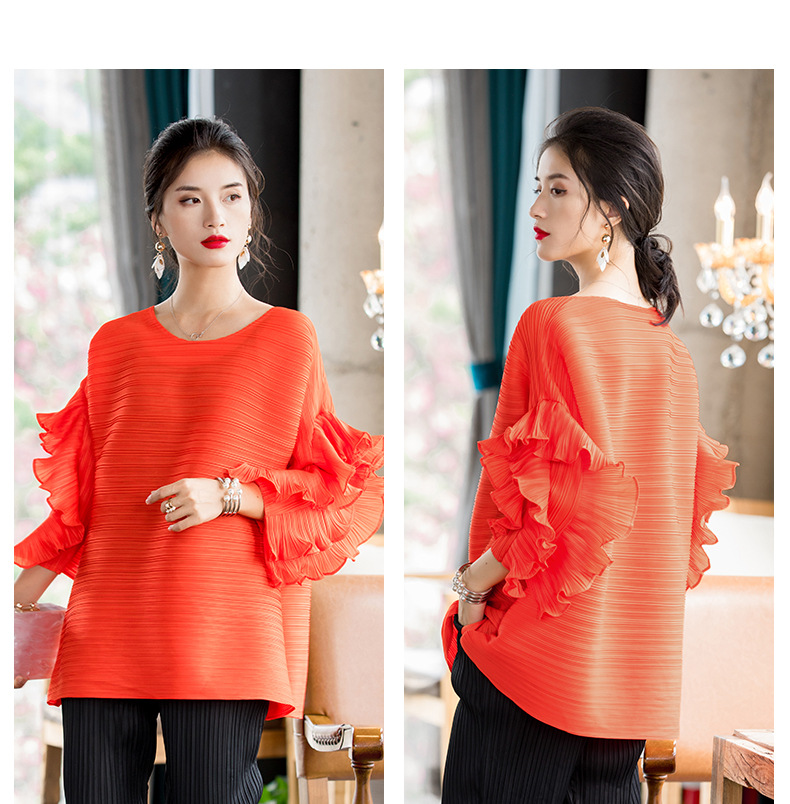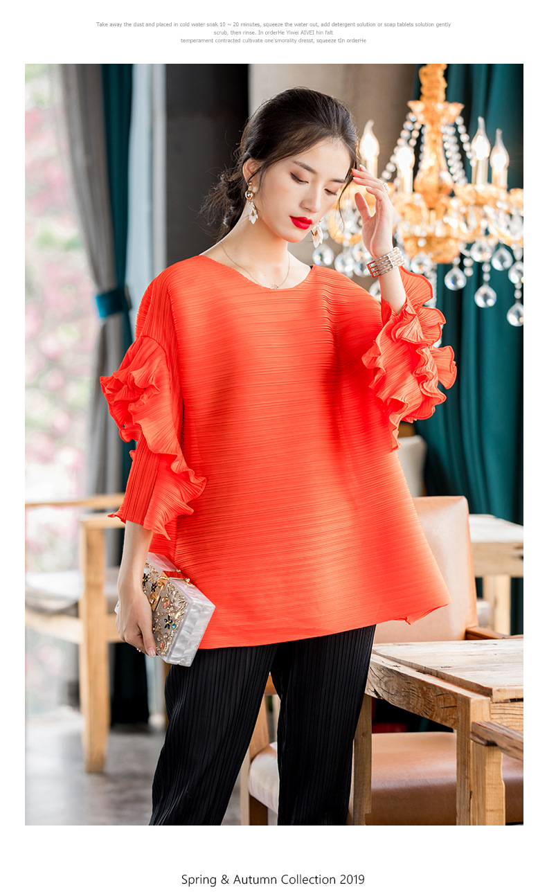 You are here: Home / Product / High Qulity Pleats / Spring 2020 New Versatile T-shirt Fashion Petal Sleeve Large Women Pleated Tops