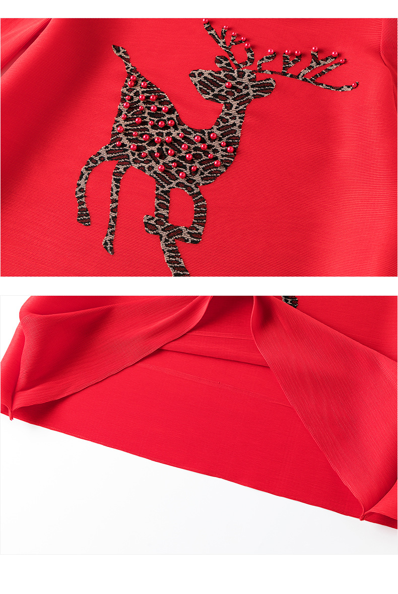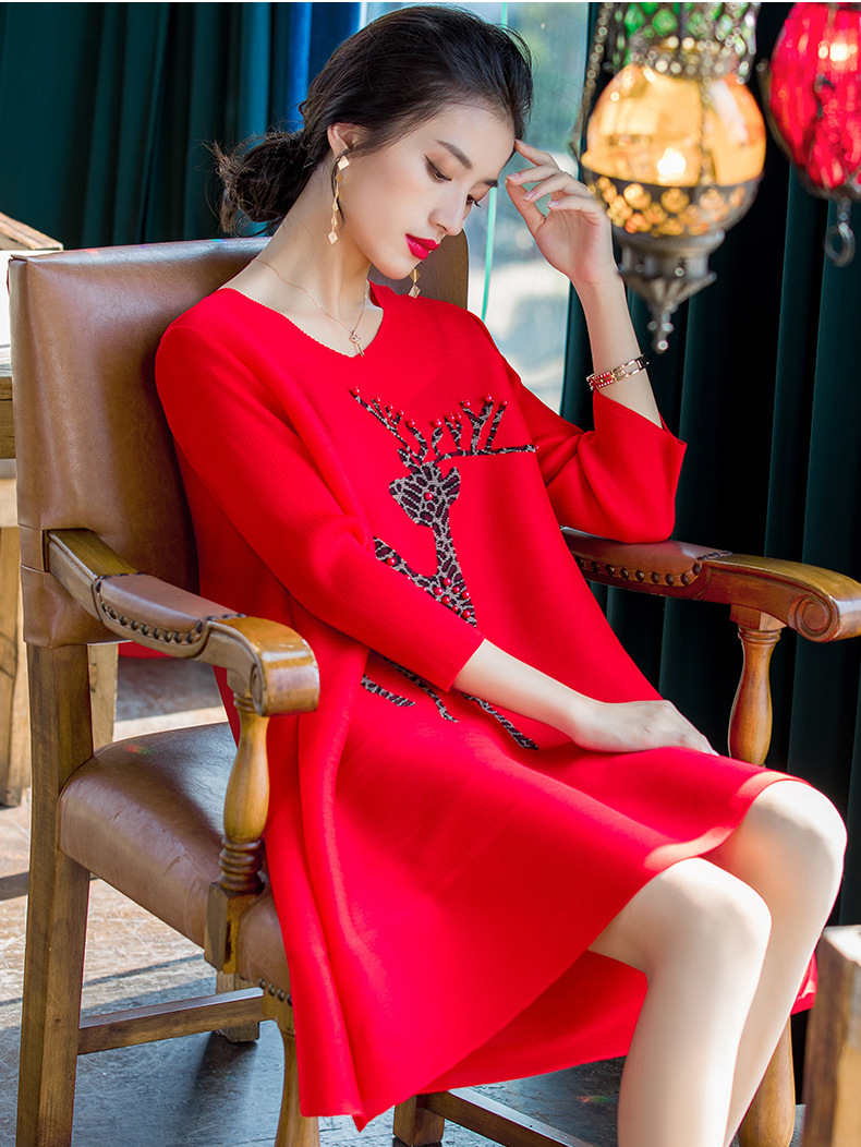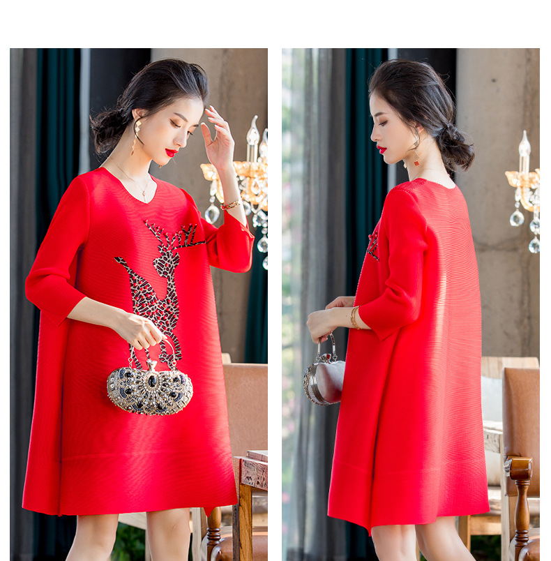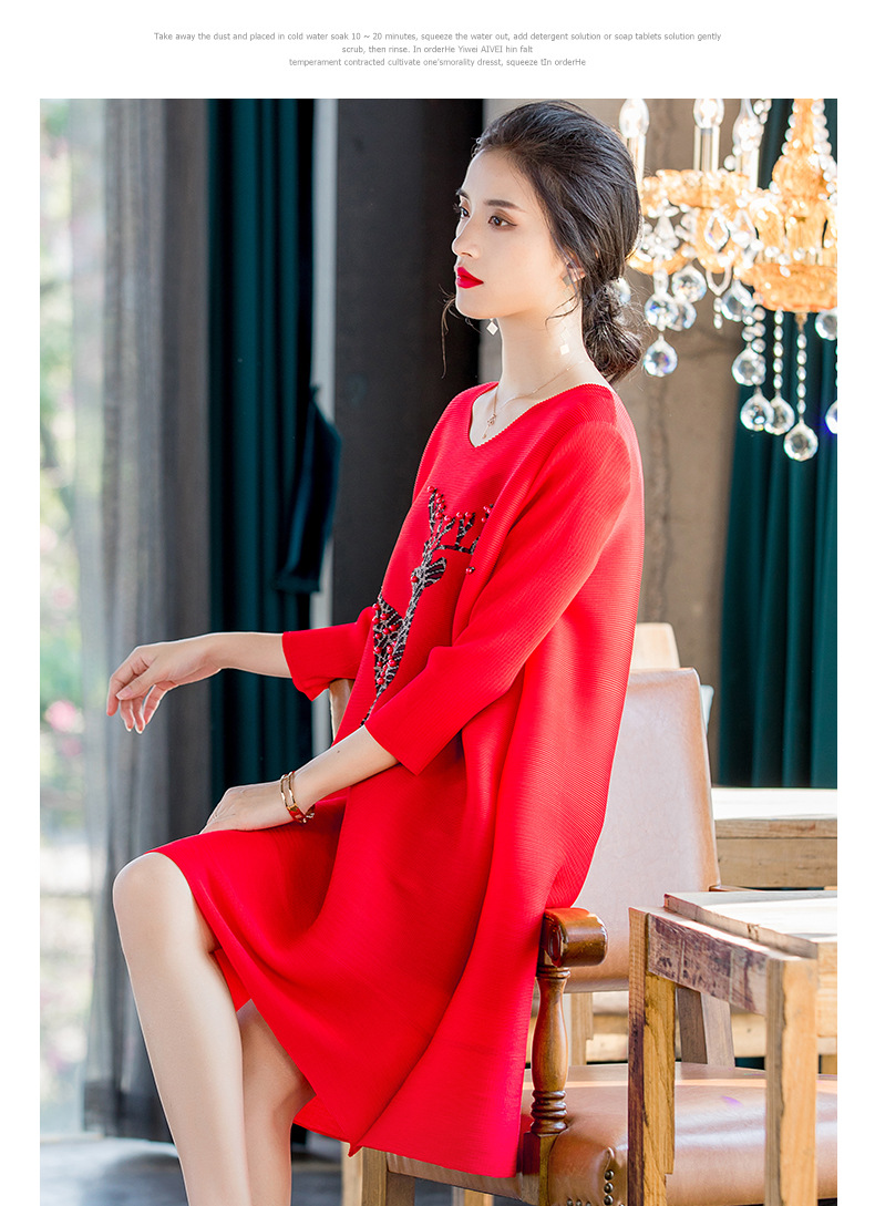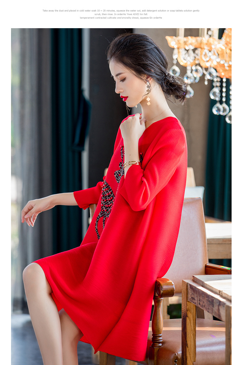You are here: Home / Product / High Qulity Pleats / Spring 2020 New Women's Red Loose A-line Dress Large Pleated Beaded Embroidered Dress