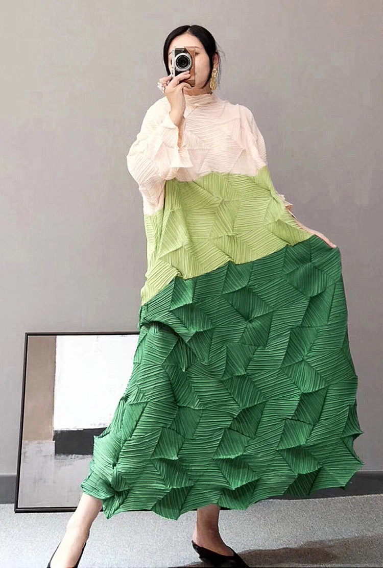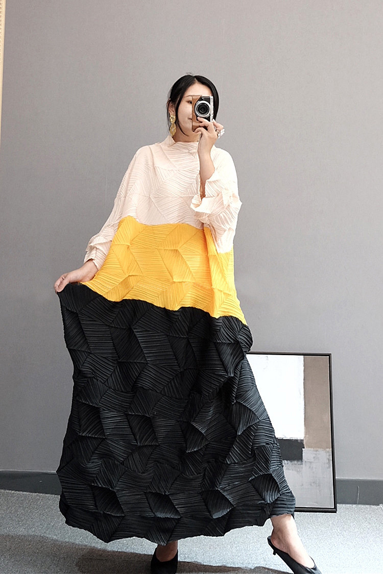 You are here: Home / Product / High Qulity Pleats / Spring Summer Women Diamond Pleated Dress New Color Contrast Straight Dress