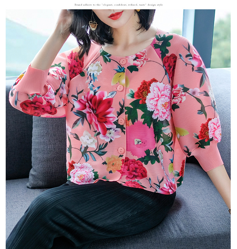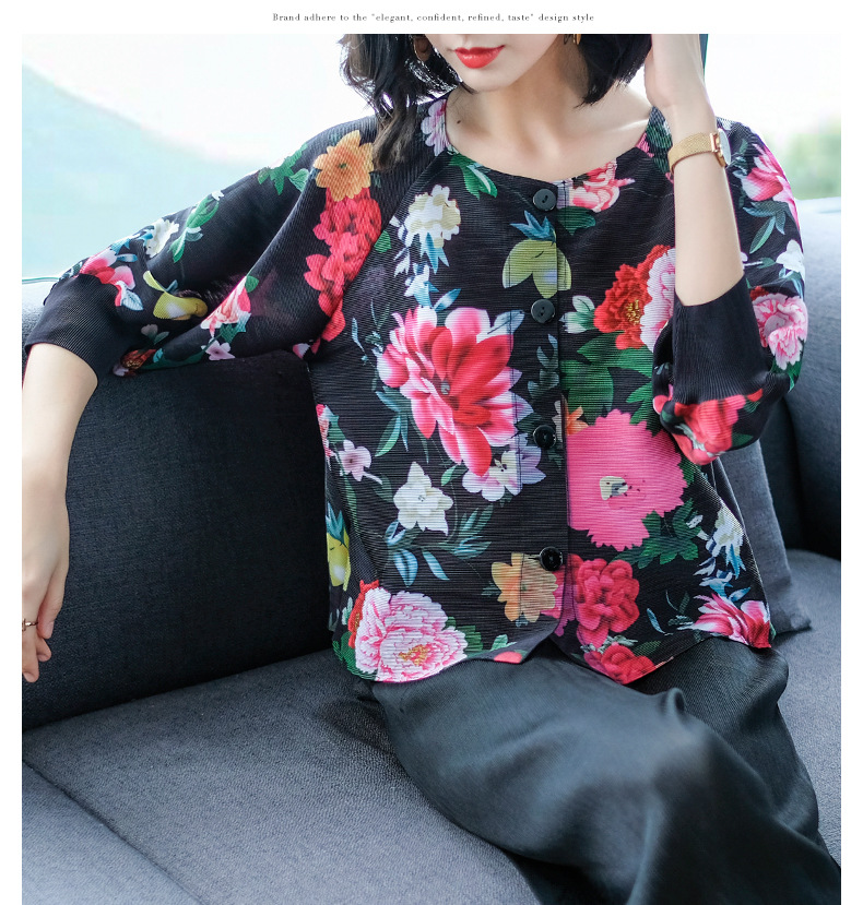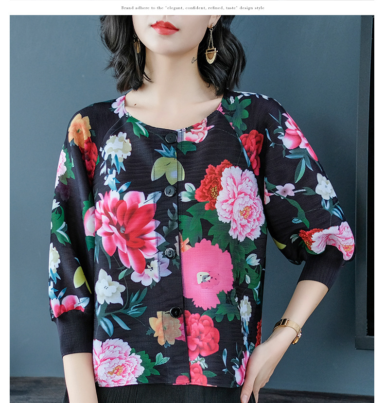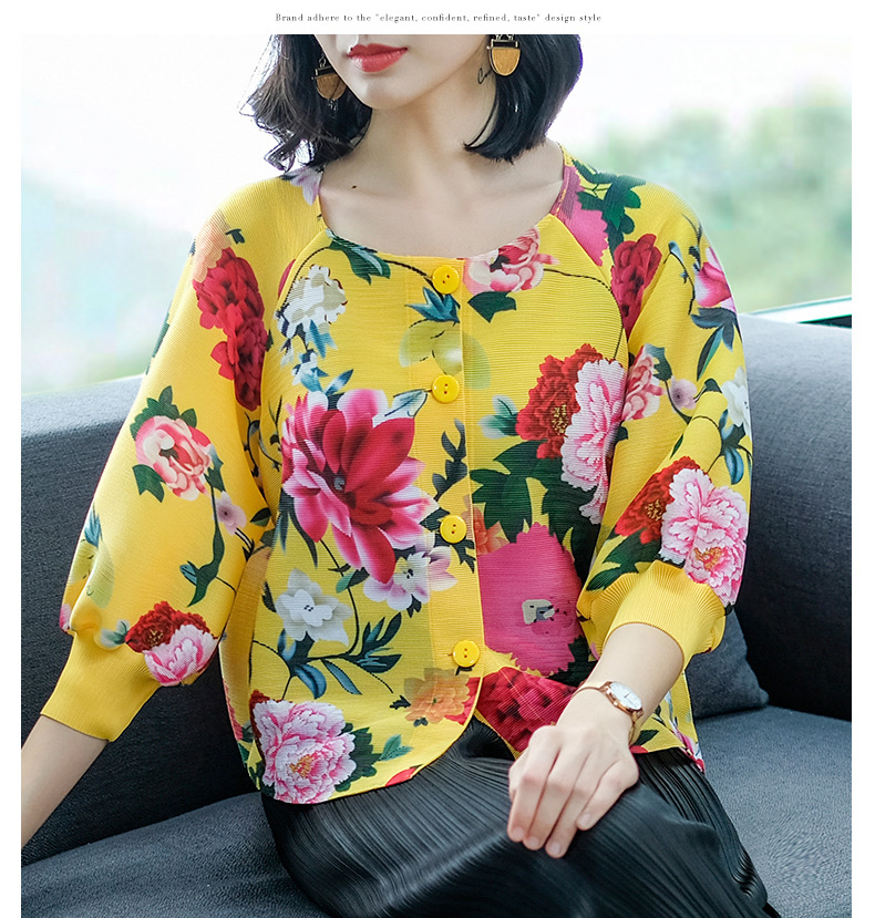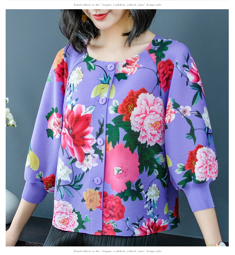 You are here: Home / Product / High Qulity Pleats / Spring Women Pleated Fashion New Floral Print Loose Tops Shirts