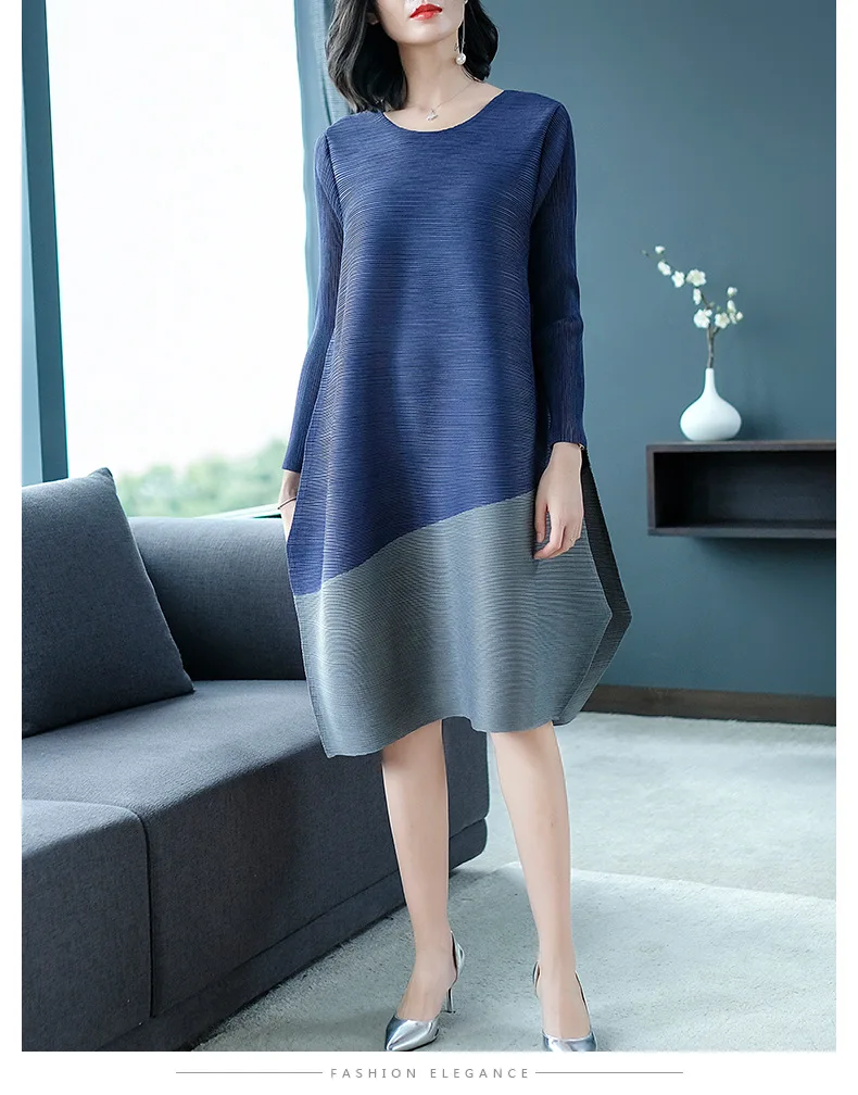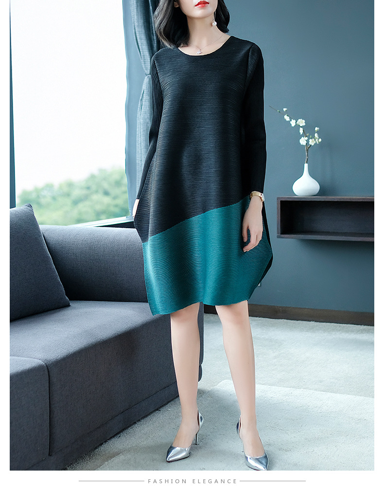 You are here: Home / Product / High Qulity Pleats / Spring Women Pleated Patchwork Tidal Lady Casual Loose Big Size Long Sleeves Dress