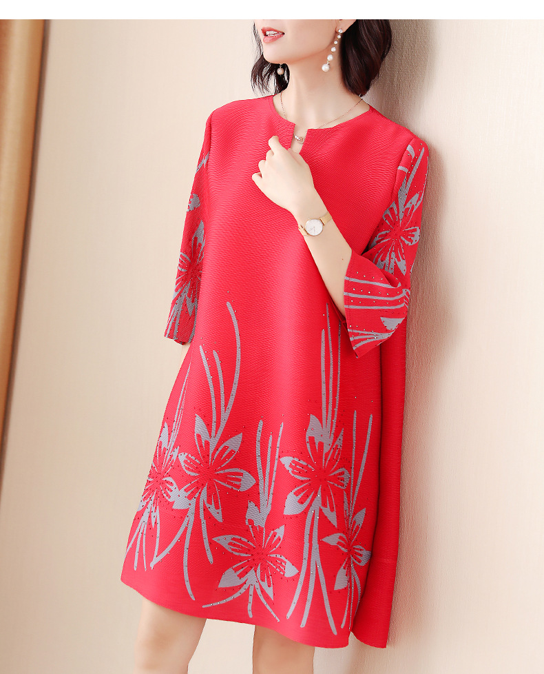 You are here: Home / Product / Pleated Dresses&Skirts / Summer 2020 Trend Women Printed Beaded Dress New Loose Pleated Dress