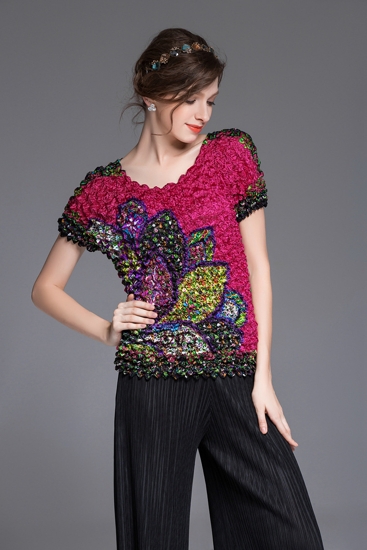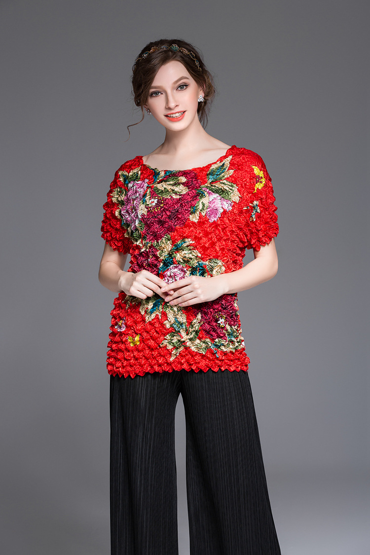 You are here: Home / Product / High Qulity Pleats / Summer Wome Print Casual Big Size Loose Elastic Tops Popular Fashion Tidal Magic Shirts