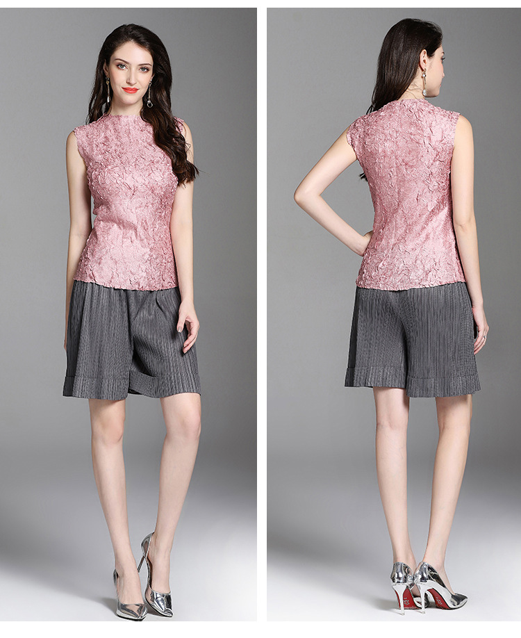 You are here: Home / Product / High Qulity Pleats / Summer Women Crinkled Office Lady Satin Fashion Sleeveless O-neck Pullover Tidal Blouses Shirts