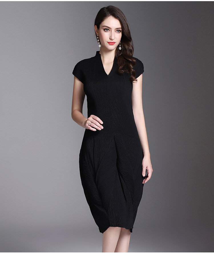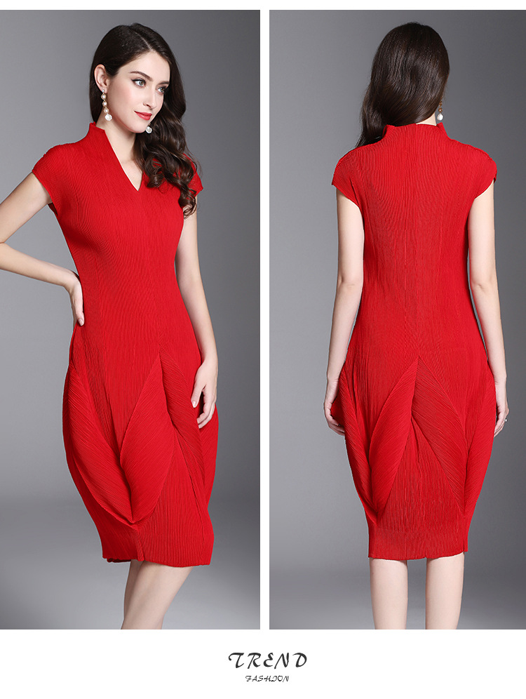 You are here: Home / Product / High Qulity Pleats / Summer Women Pleated Solid Color Lady Elegant High Quality One Piece Dress