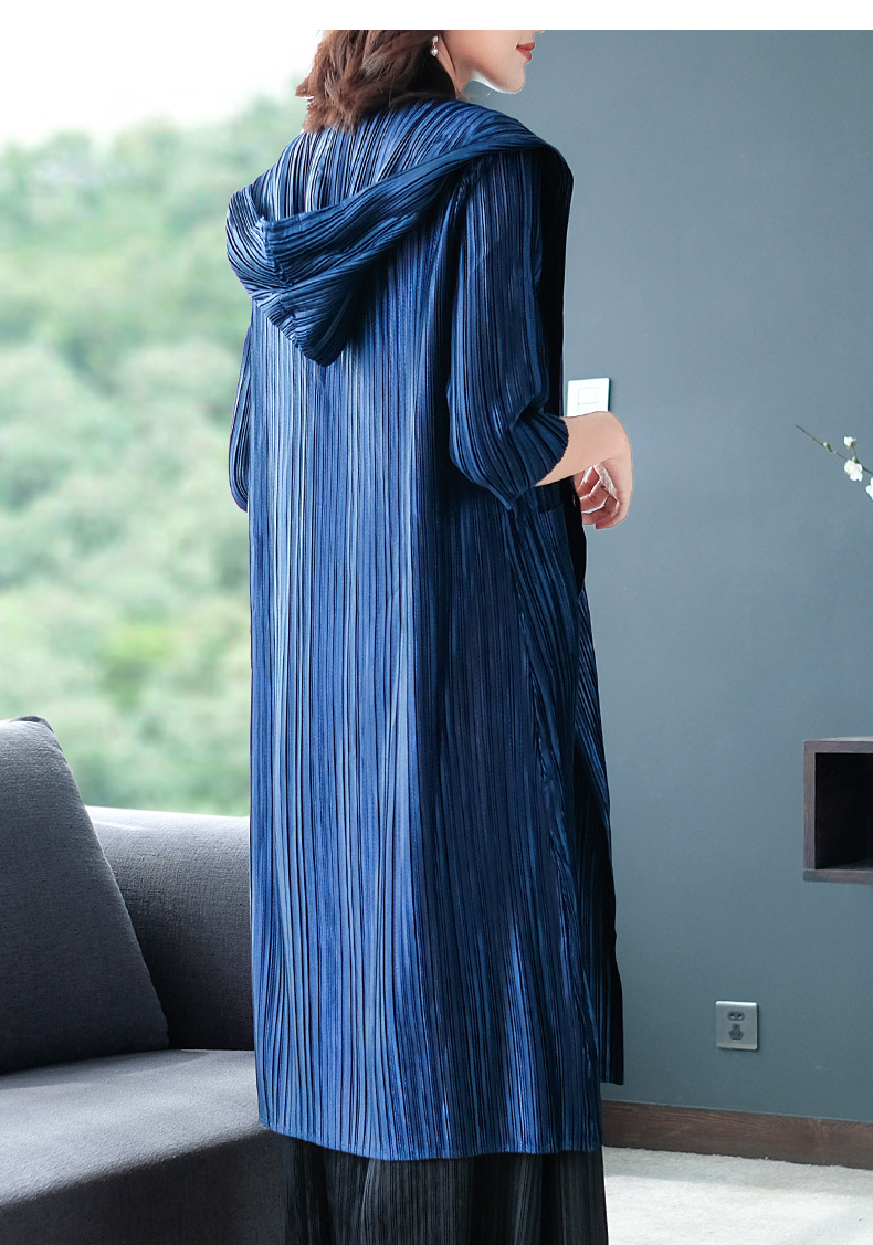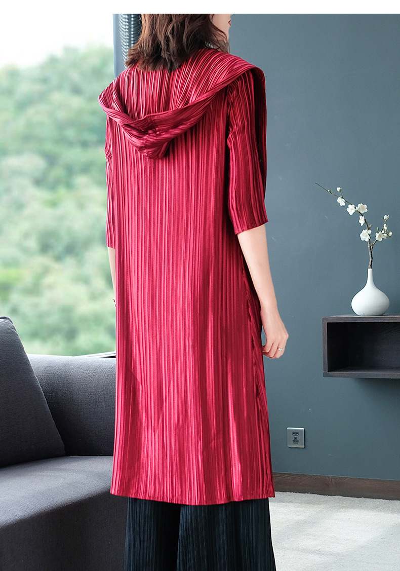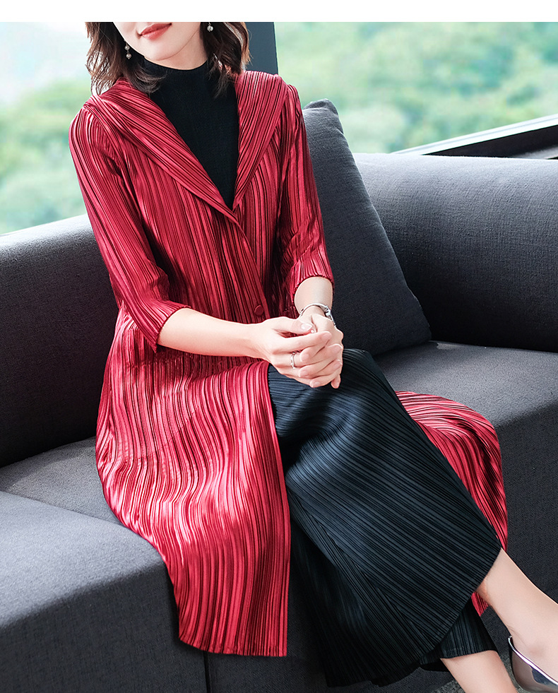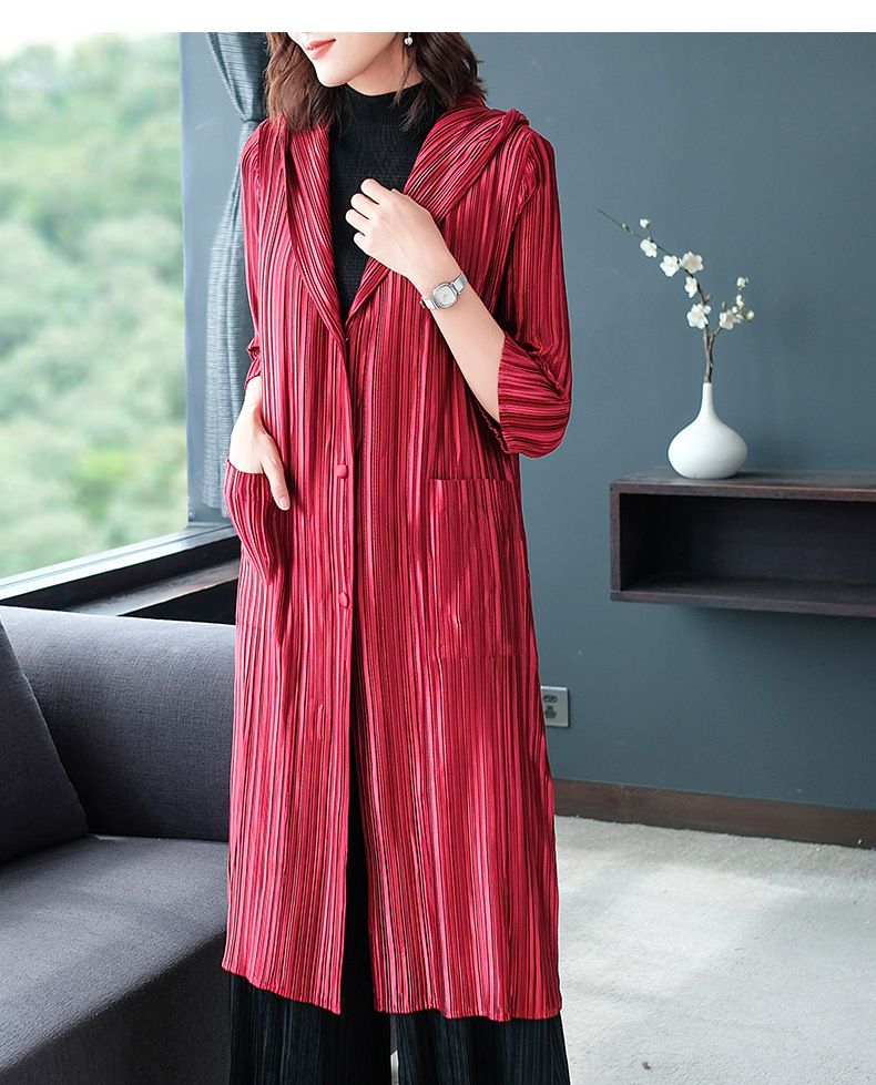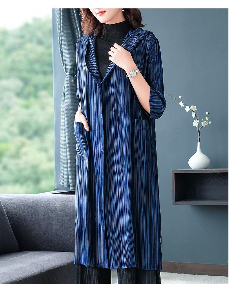 You are here: Home / Product / High Qulity Pleats / Women Autumn Pleated Plain-coloured Turtleneck Cap Pleated Seven-sleeve Jacket Fashionable Single-row Button Windbreaker