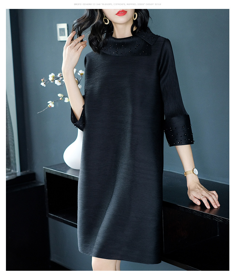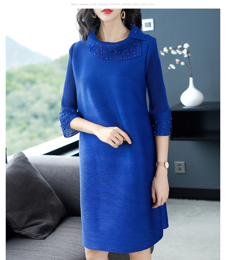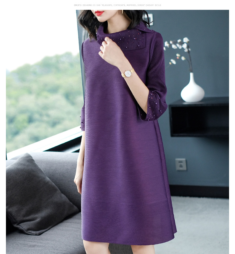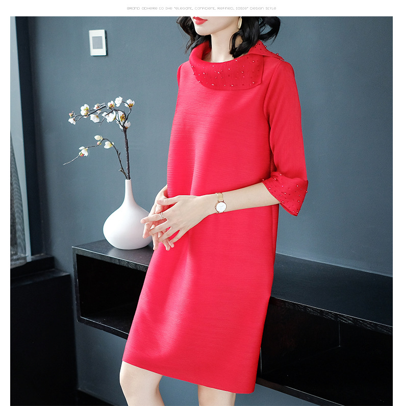 You are here: Home / Product / High Qulity Pleats / Women Pleated Autumn Fashion New Solid Color Lady Elegant Popular Loose One Piece Dress