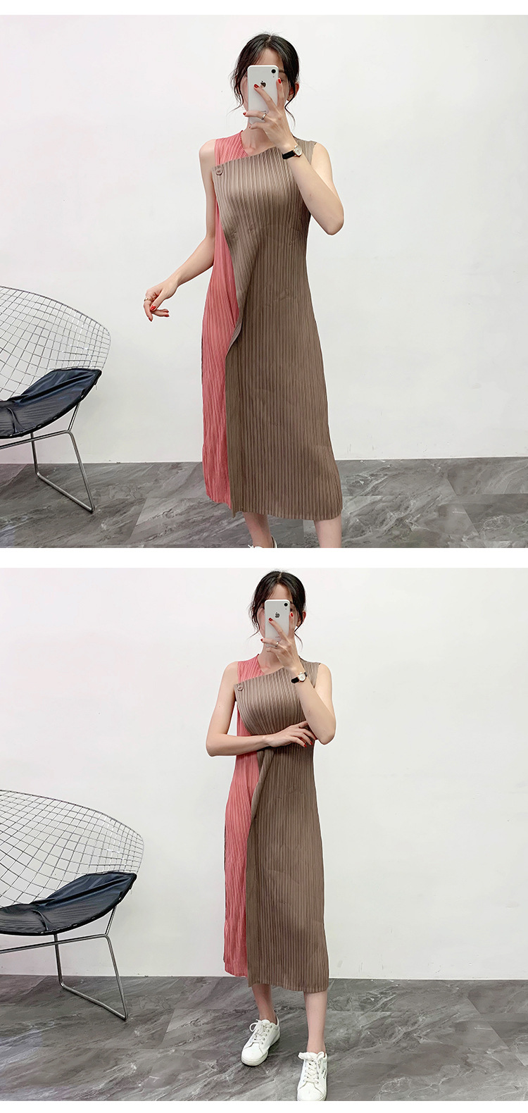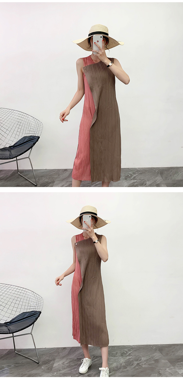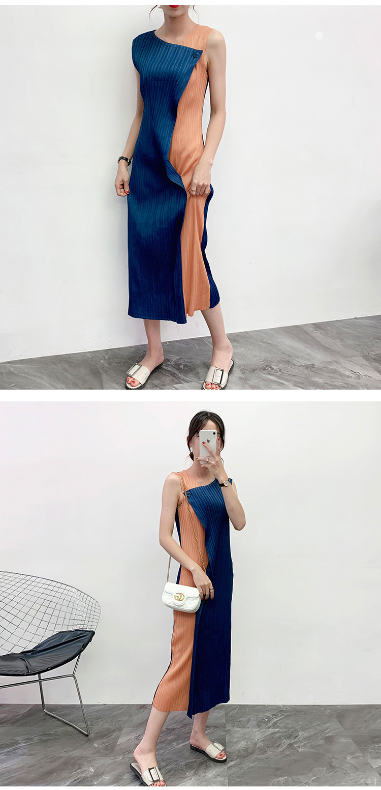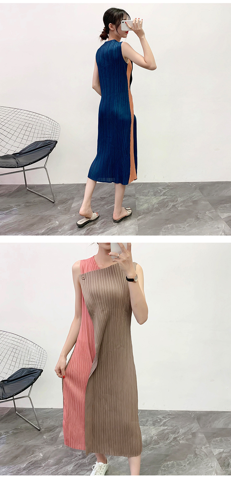 Women Pleated Basic Pleated Dress 2019 New Patchwork Contrast Bottom Dress