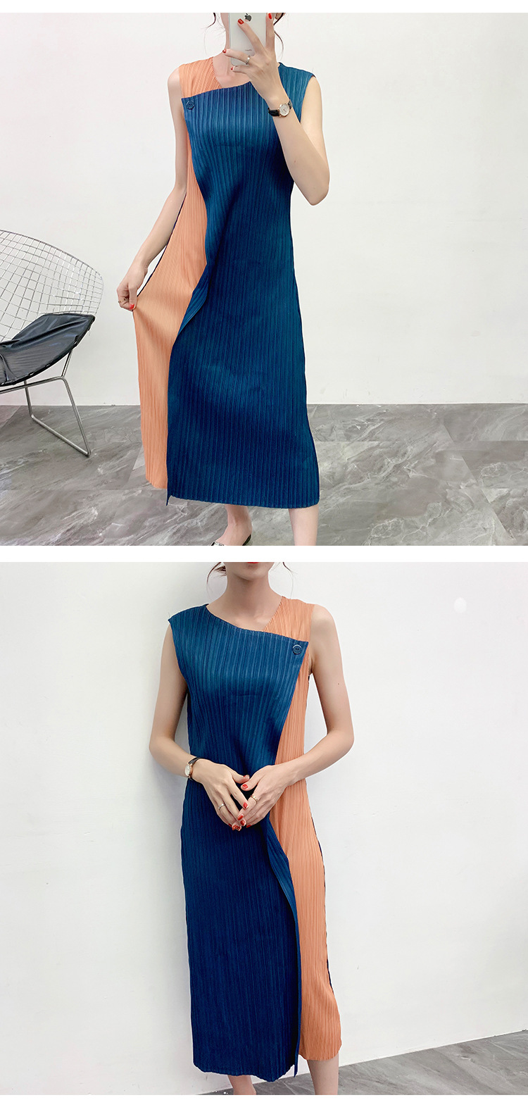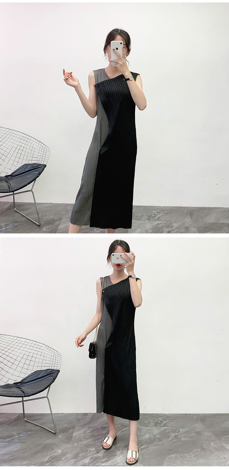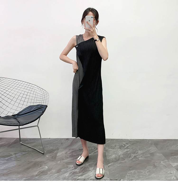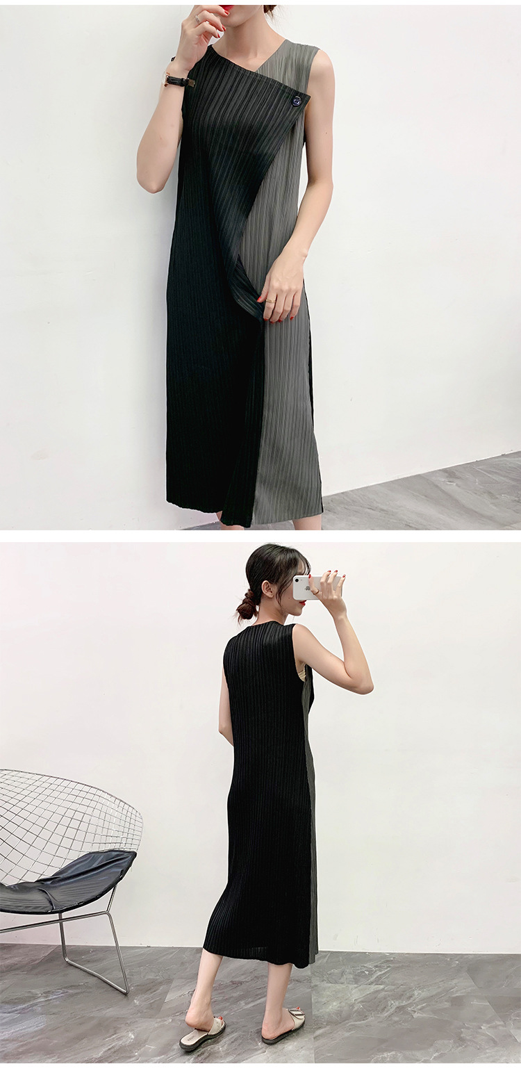 Women Pleated Basic Pleated Dress 2019 New Patchwork Contrast Bottom Dress