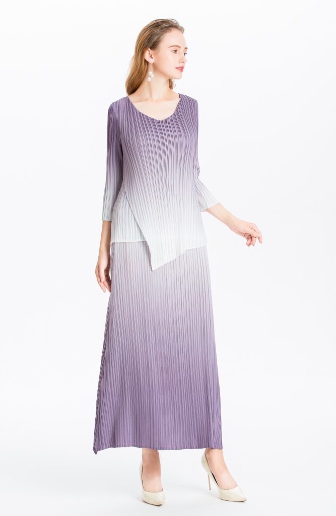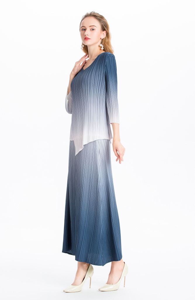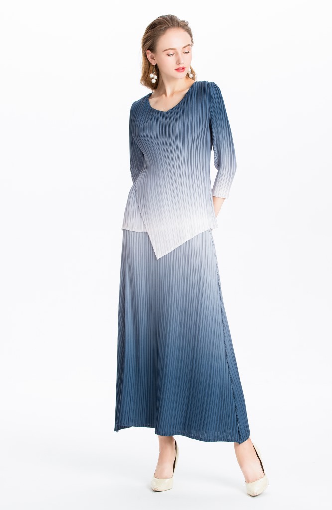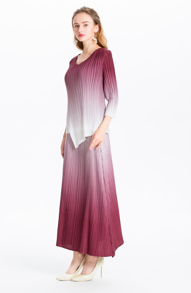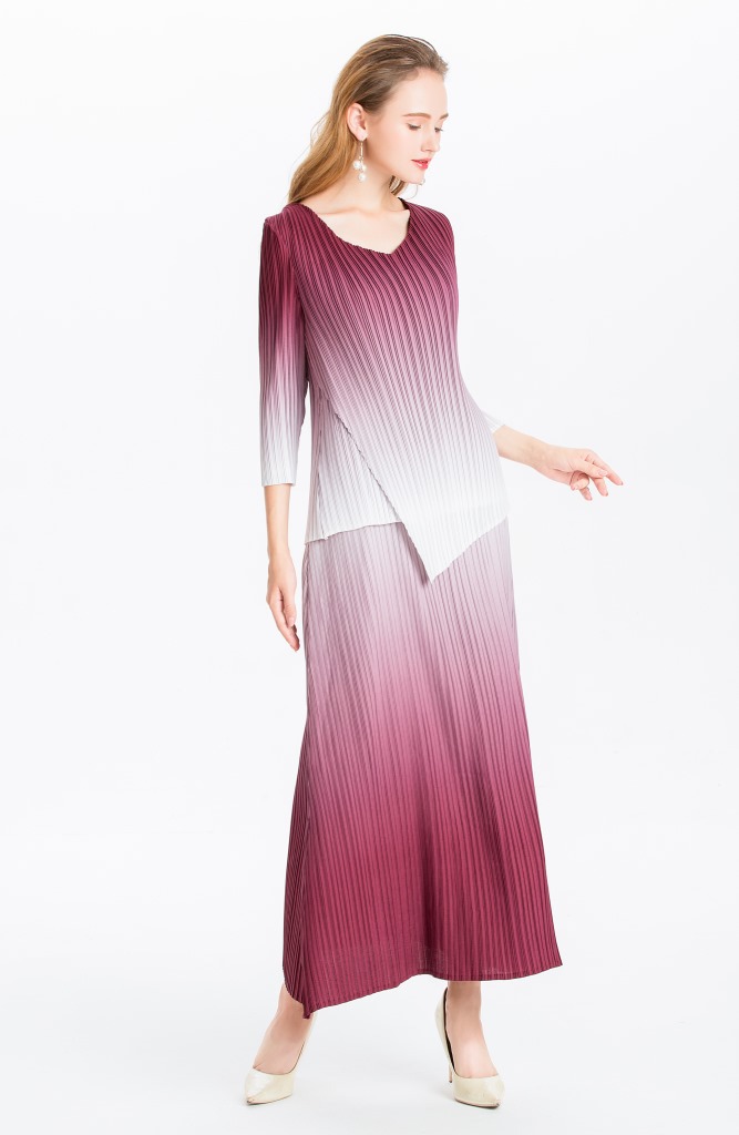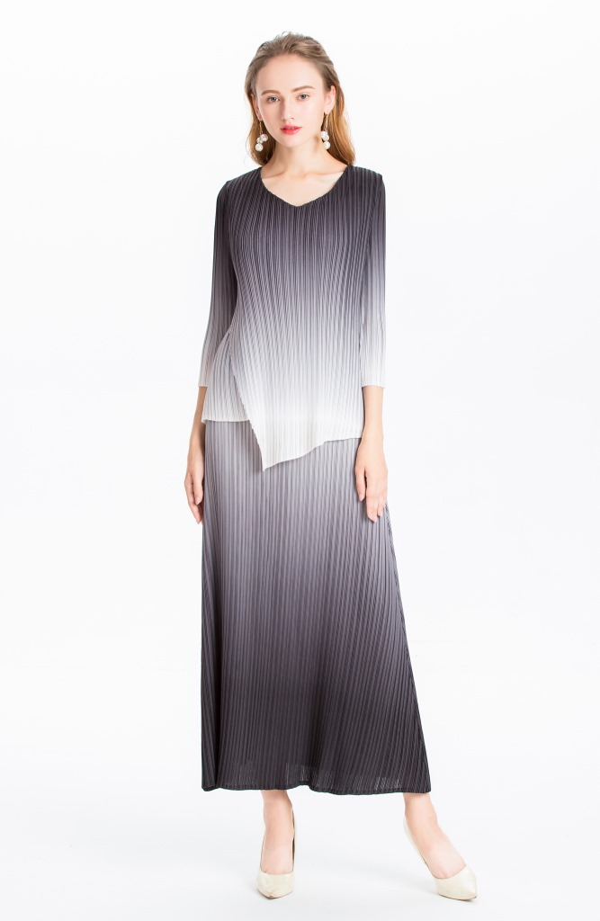 You are here:Home / Product / High Qulity Pleats / Women Pleated Dress Gradient Colour Spring Autumn Long Sleeve Irregular Tops Elegant Leisure Dress Clothing Sets