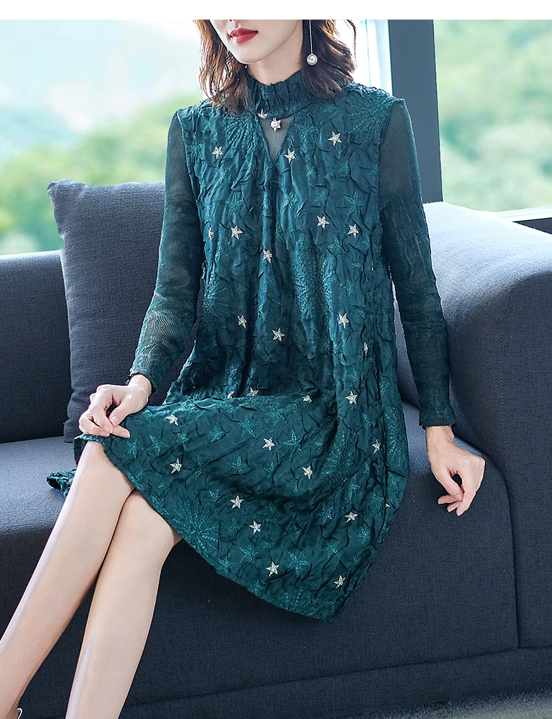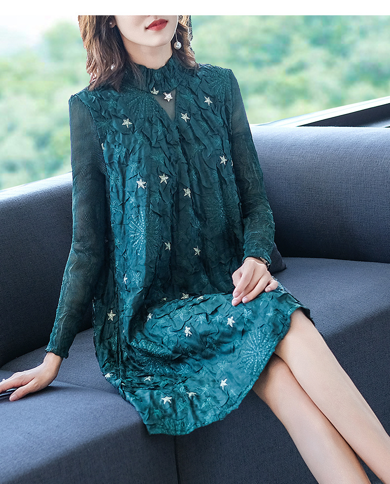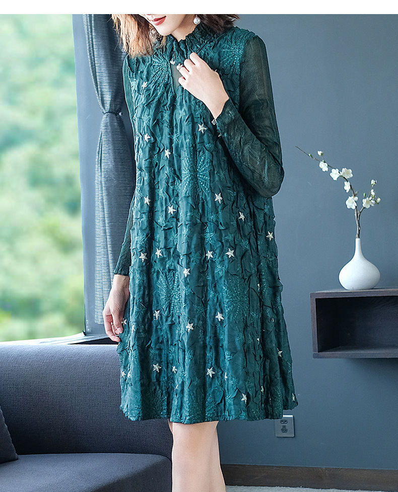 Women Pleated Embroidery Beaded Loose Fashion New Dresses
