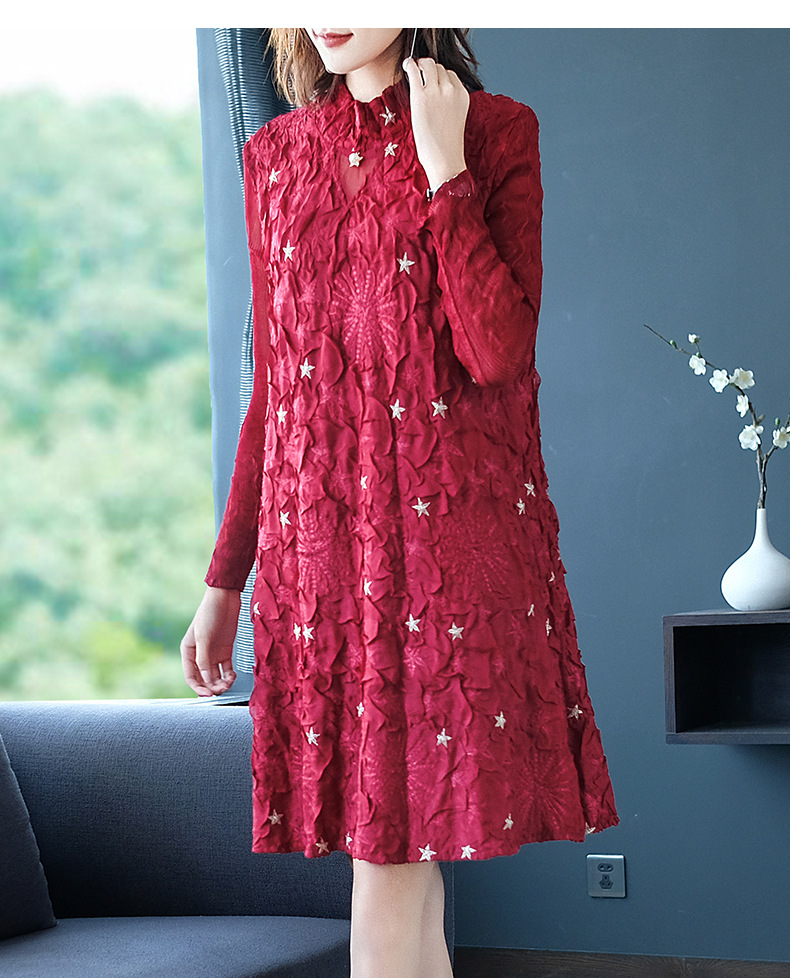You are here: Home / Product / High Qulity Pleats / Women Pleated Embroidery Beaded Loose Fashion New Dresses