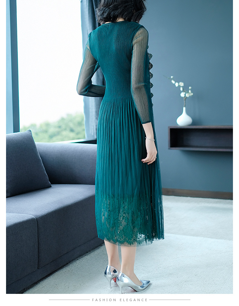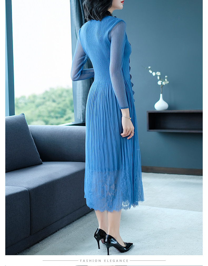 You are here: Home / Product / High Qulity Pleats / Women Pleated Fashion New Solid Color Lady Elegant Popular Long One Piece Dress