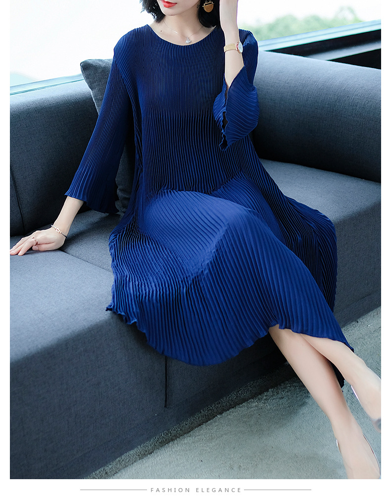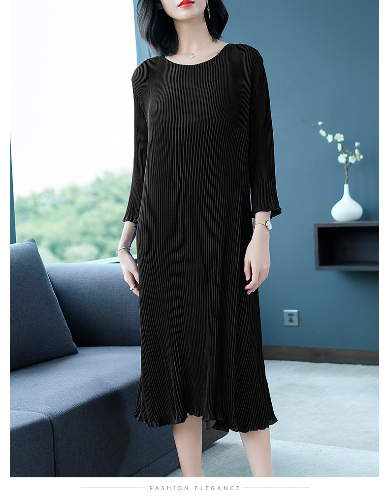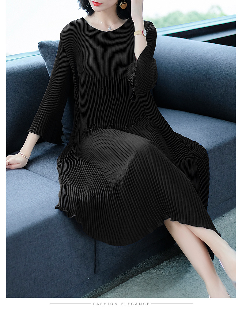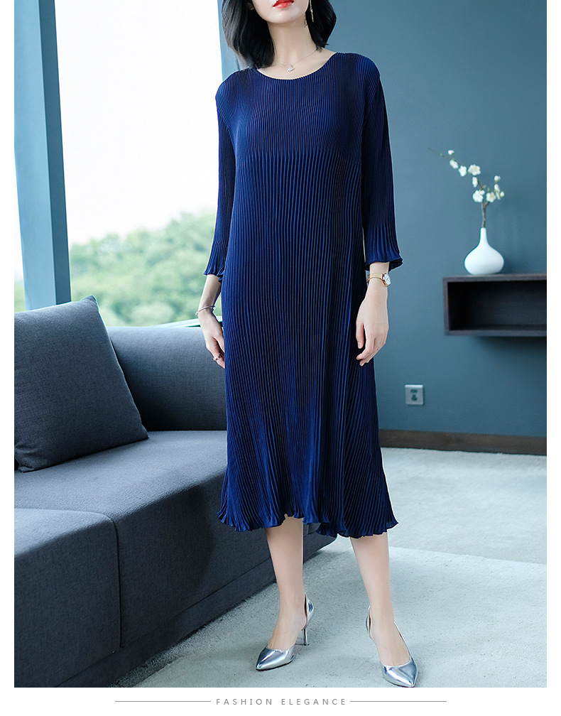 You are here: Home / Product / High Qulity Pleats / Women Pleated Fashion New Solid Color Loose Big Size Lady High Quality Long Dress