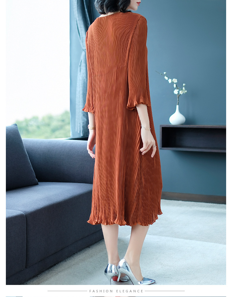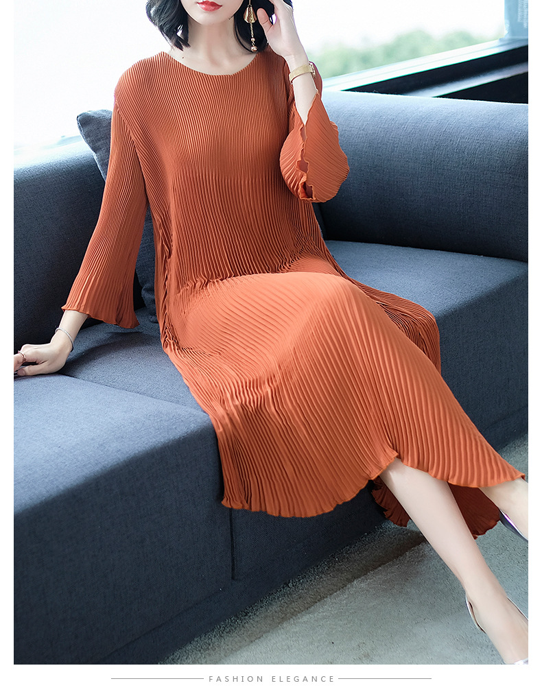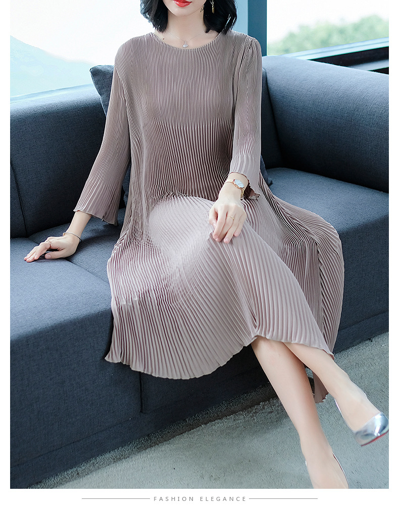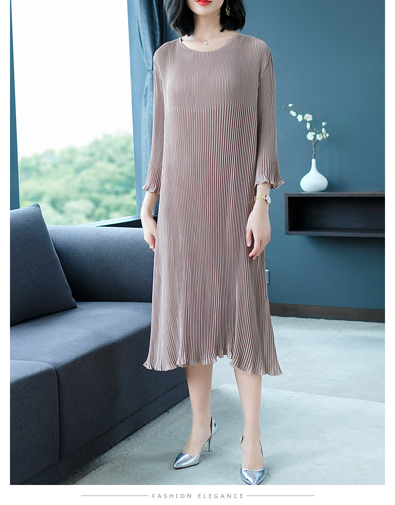 You are here: Home / Product / High Qulity Pleats / Women Pleated Fashion New Solid Color Loose Big Size Lady High Quality Long Dress
