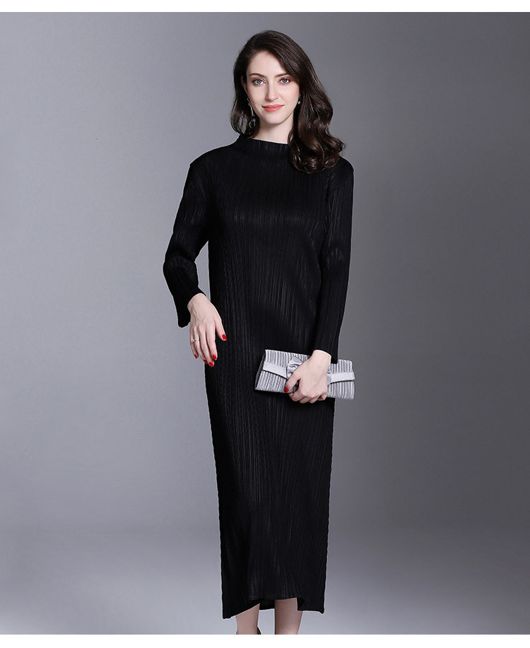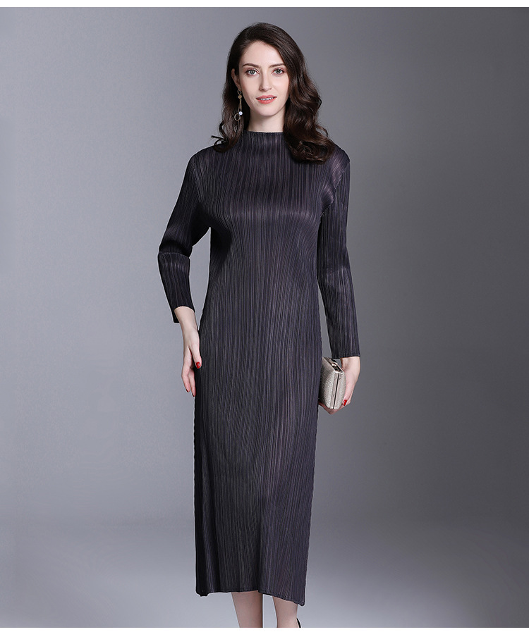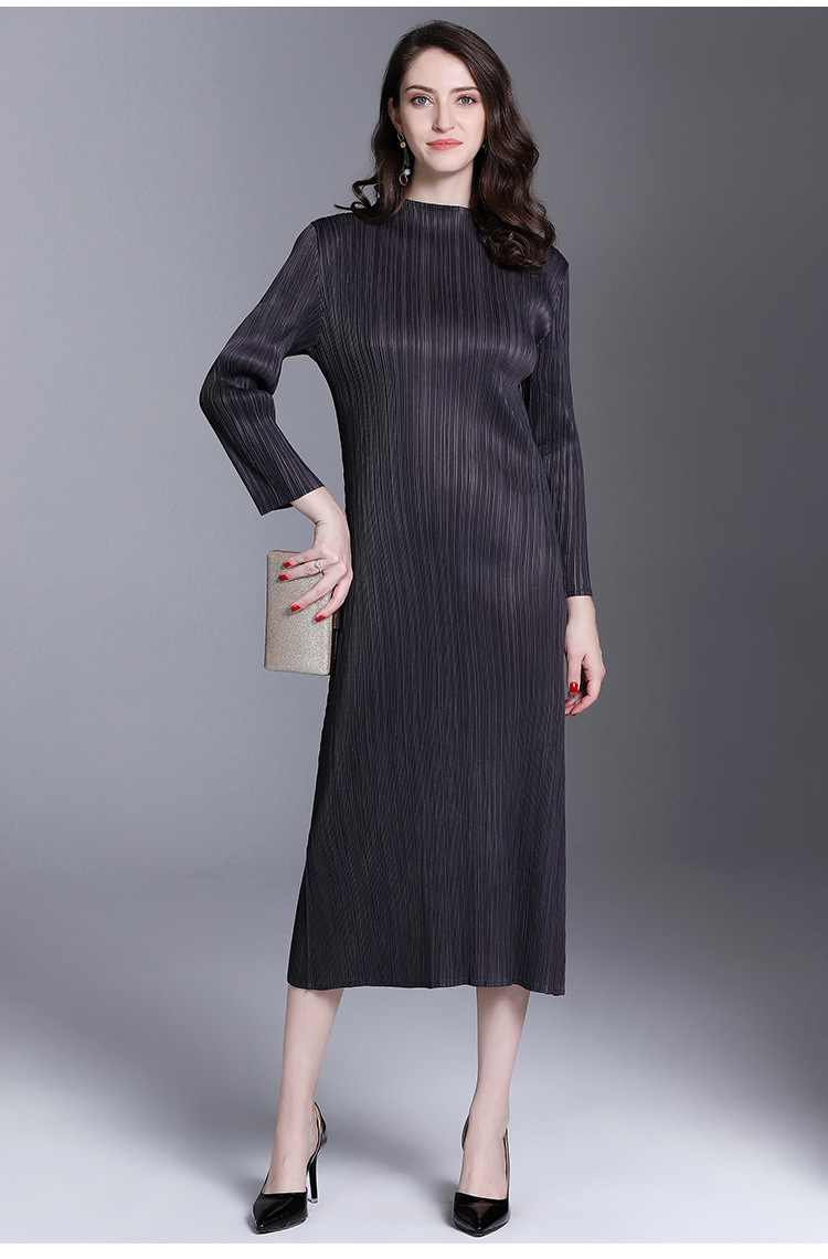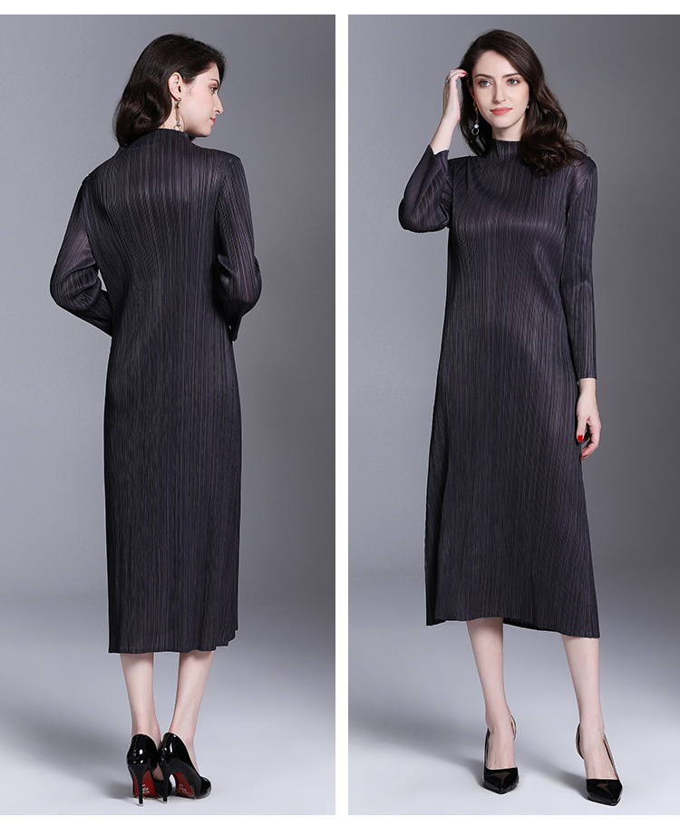 You are here: Home / Product / High Qulity Pleats / Women Pleated Fashion Office Lady Loose Solid Elegant Mid-calf Turtleneck Autumn Dress