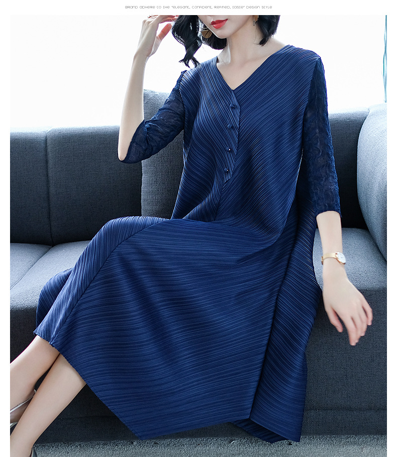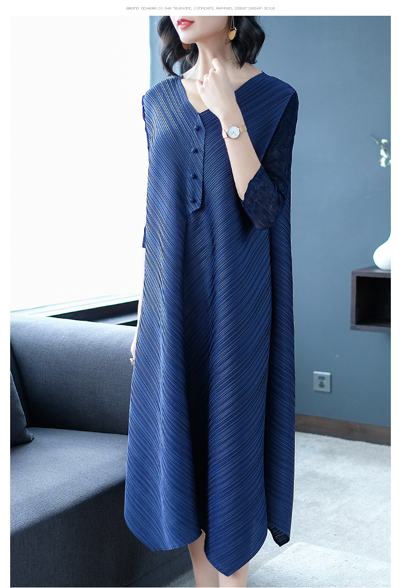 You are here: Home / Product / High Qulity Pleats / Women Pleated Solid Color Loose Big Size Lady Elegant Tidal Dress