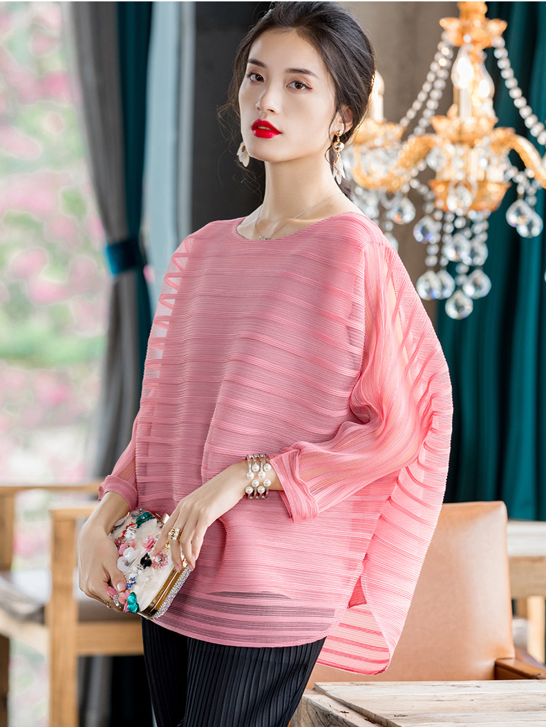 You are here: Home / Product / High Qulity Pleats / Women Pleated -shirt Top Stripes New Fashion Long Sleeve T-shirt In Early Spring 2020