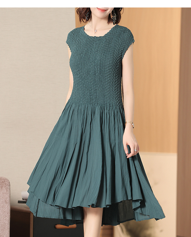 Women Pleats Dress Summer Temperament Large Size Dress Irregular Pleats Popular Dress
