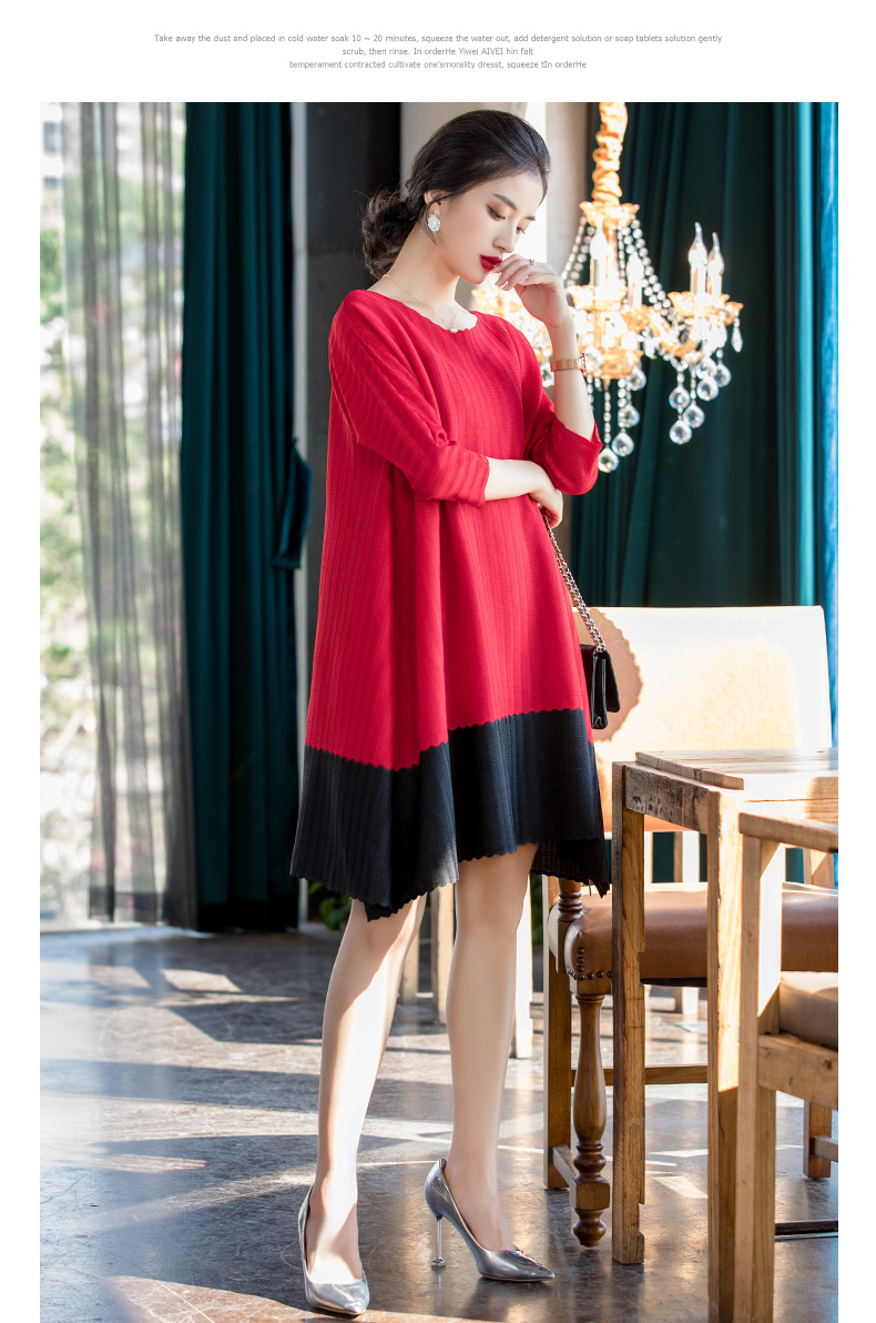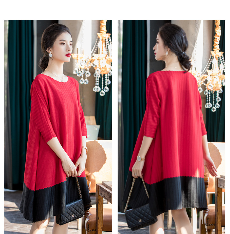 You are here: Home / Product / High Qulity Pleats / Women Red Dress Early Spring 2020 New Loose Large Color Contrast Dress